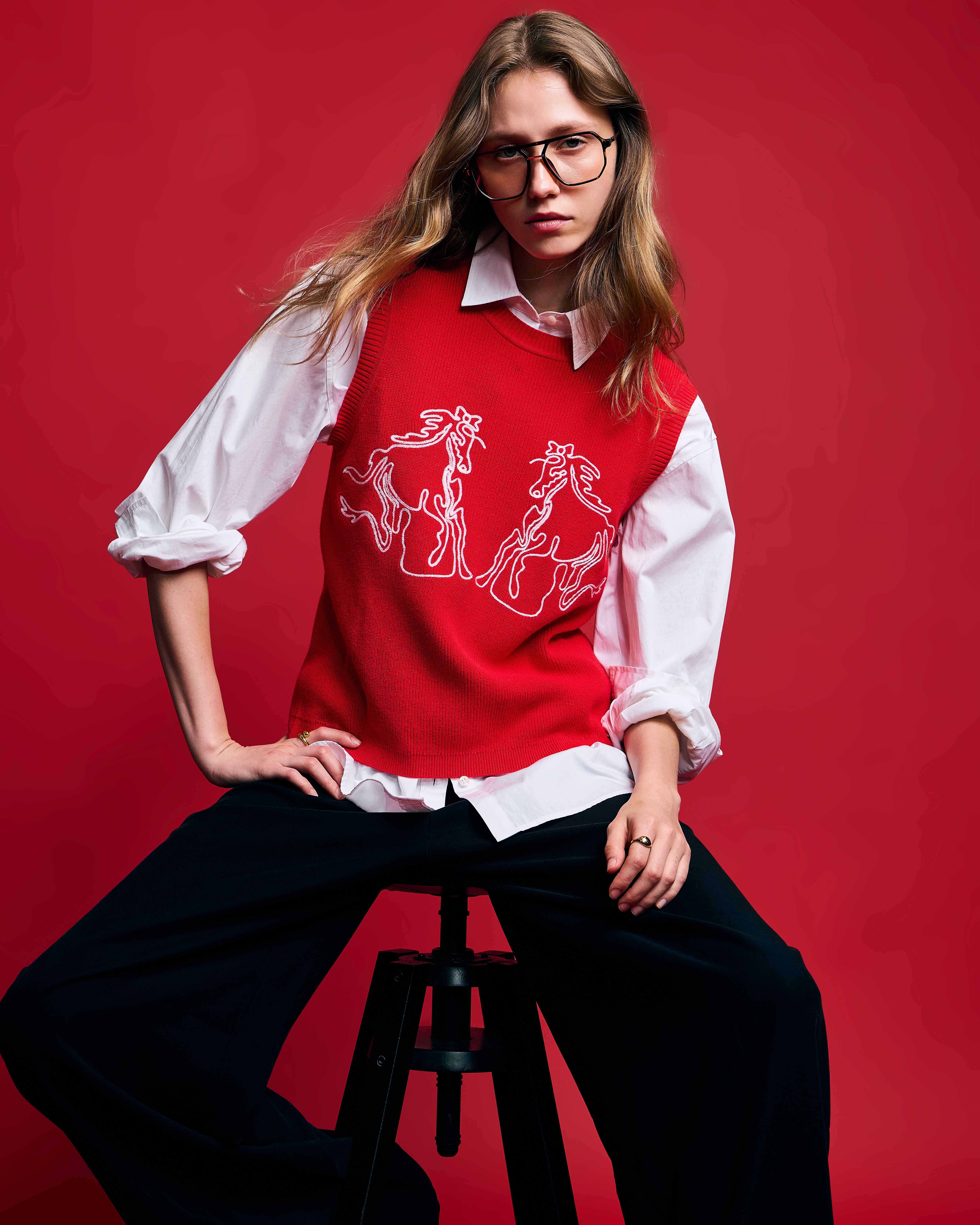 แบรนด์ CC DOUBLE O ถ่ายทอดพลังและความสง่างามของสัญลักษณ์นักษัตรปีมะเมีย “ม้า” ผ่านดีไซน์ที่ทันสมัยและคล่องตัว เพิ่มความโดดเด่นด้วยรายละเอียดงานปักลายนกสีทองบนไอเทมซิกเนเจอร์อย่างเสื้อโปโล เสื้อเชิ้ตแขนสั้น และเสื้อแขนยาว ไฮไลต์สำหรับผู้ชายคือเสื้อเชิ้ตดีไซน์แมนดารินคอลล่า (Mandarin Collar) ที่ช่วยเสริมลุคให้ดูเท่และมั่นใจ ขณะที่ไอเทมสำหรับผู้หญิงอย่างเสื้อสเวตเตอร์และเสื้อกั๊กไหมพรมถูกออกแบบมาเพื่อการมิกซ์แอนด์แมตช์อย่างสนุกสนาน สะท้อนแฟชั่นตรุษจีนในมุมมองที่ร่วมสมัยและสวมใส่ได้จริงในทุกวัน