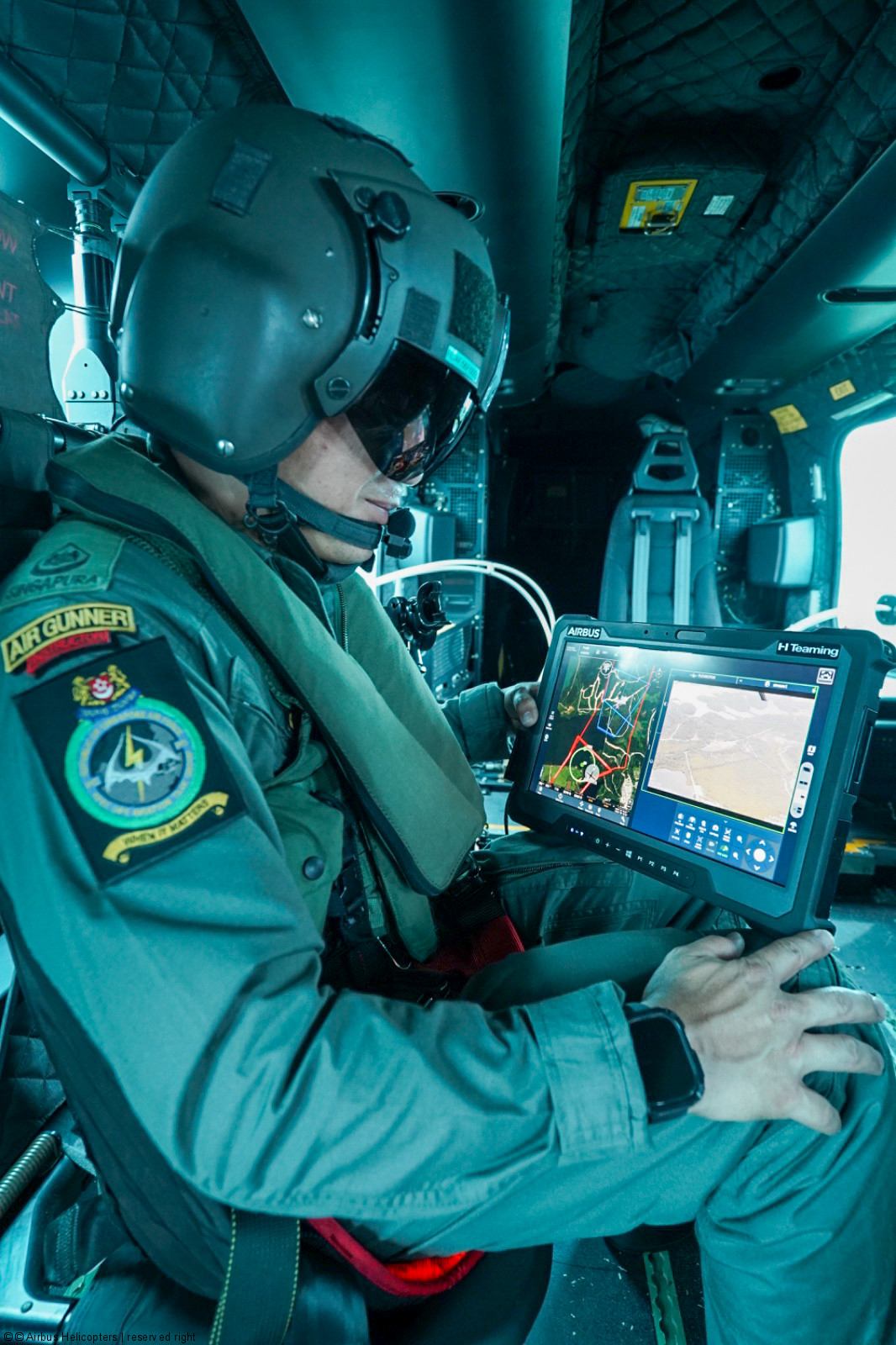 แอร์บัส และสำนักงานวิทยาศาสตร์และเทคโนโลยีกลาโหมแห่งสิงคโปร์ (Defence Science and Technology Agency: DSTA) ประสบความสำเร็จในการดำเนินการทดสอบการบิน HTeaming ซึ่งถือเป็นโครงการบุกเบิก ณ ฐานทัพอากาศในประเทศสิงคโปร์ โดยการสาธิตการบินครั้งนี้นับเป็นครั้งแรกที่ระบบ HTeaming ถูกนำมาใช้งานร่วมกับอากาศยานไร้คนขับ Airbus Flexrotor (Uncrewed Aerial System: UAS) และเฮลิคอปเตอร์ เอช225เอ็ม (H225M) ของกองทัพอากาศสาธารณรัฐสิงคโปร์ (Republic of Singapore Air Force: RSAF)
