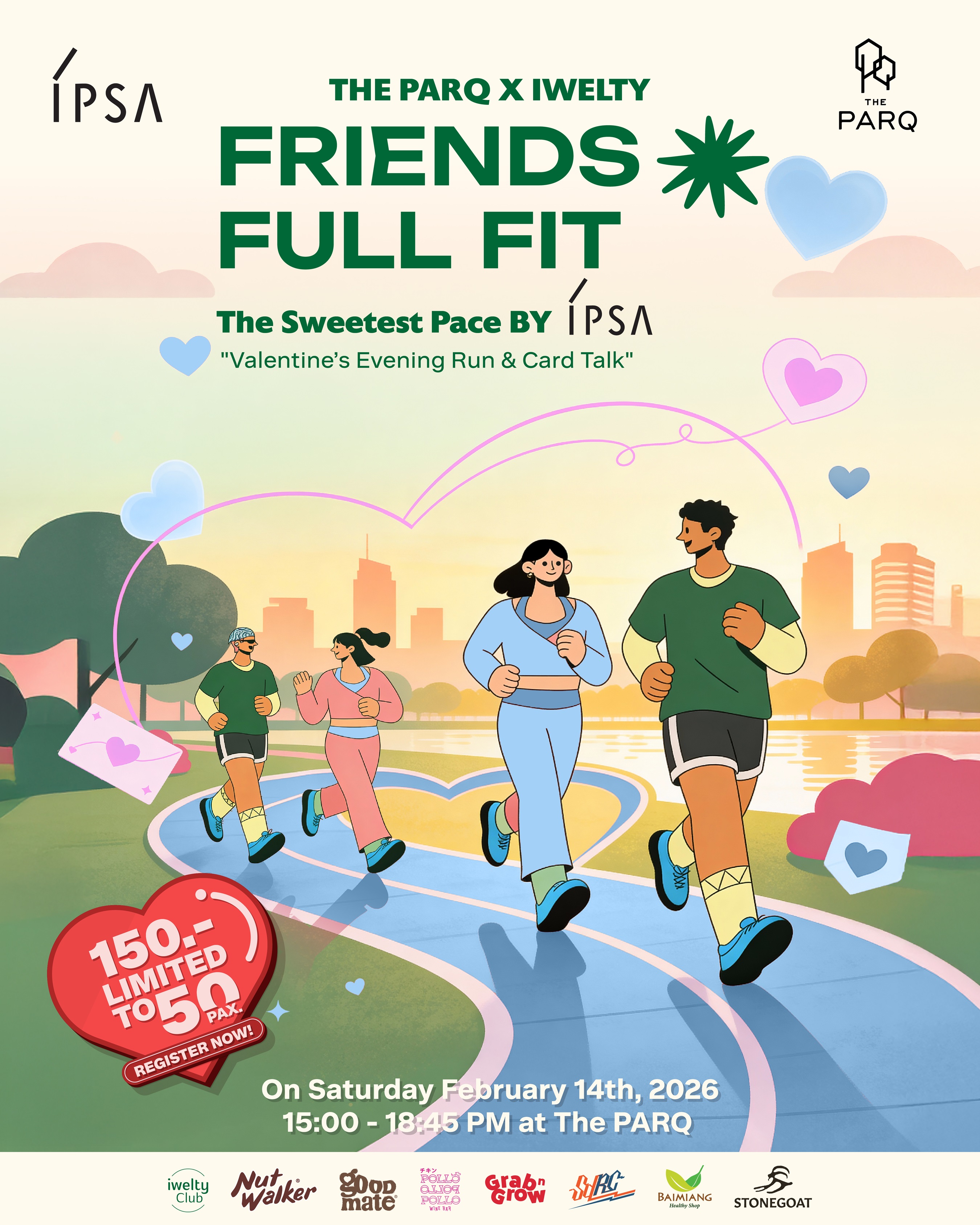 วาเลนไทน์ปีนี้ การวิ่งอาจทำให้หัวใจเต้นแรงกว่าที่เคย เมื่อ The PARQ ร่วมกับ iwelty Club และ Sardine Running Club ชวนทุกคนมาเปลี่ยนค่ำคืนวันแห่งความรักให้สนุกยิ่งขึ้น กับงาน The PARQ x iwelty Friend Full Fit: The Sweetest Pace by IPSA งานวิ่งสไตล์ Dating Run ที่พาคนรักสุขภาพจากสองคอมมูนิตี้มาเจอกัน ไม่ว่าจะเป็นสายวิ่งจริงจัง สายออกกำลังกายเบา ๆ หรือสายที่อยากเริ่มต้นดูแลตัวเอง งานนี้คือ Safe Zone สำหรับการเจอเพื่อนใหม่ และเป็นโอกาสดีในการได้พบคนที่จังหวะใจตรงกัน วันเสาร์ที่ 14 กุมภาพันธ์ 2569 ตั้งแต่เวลา 15.00น. – 18.45น.