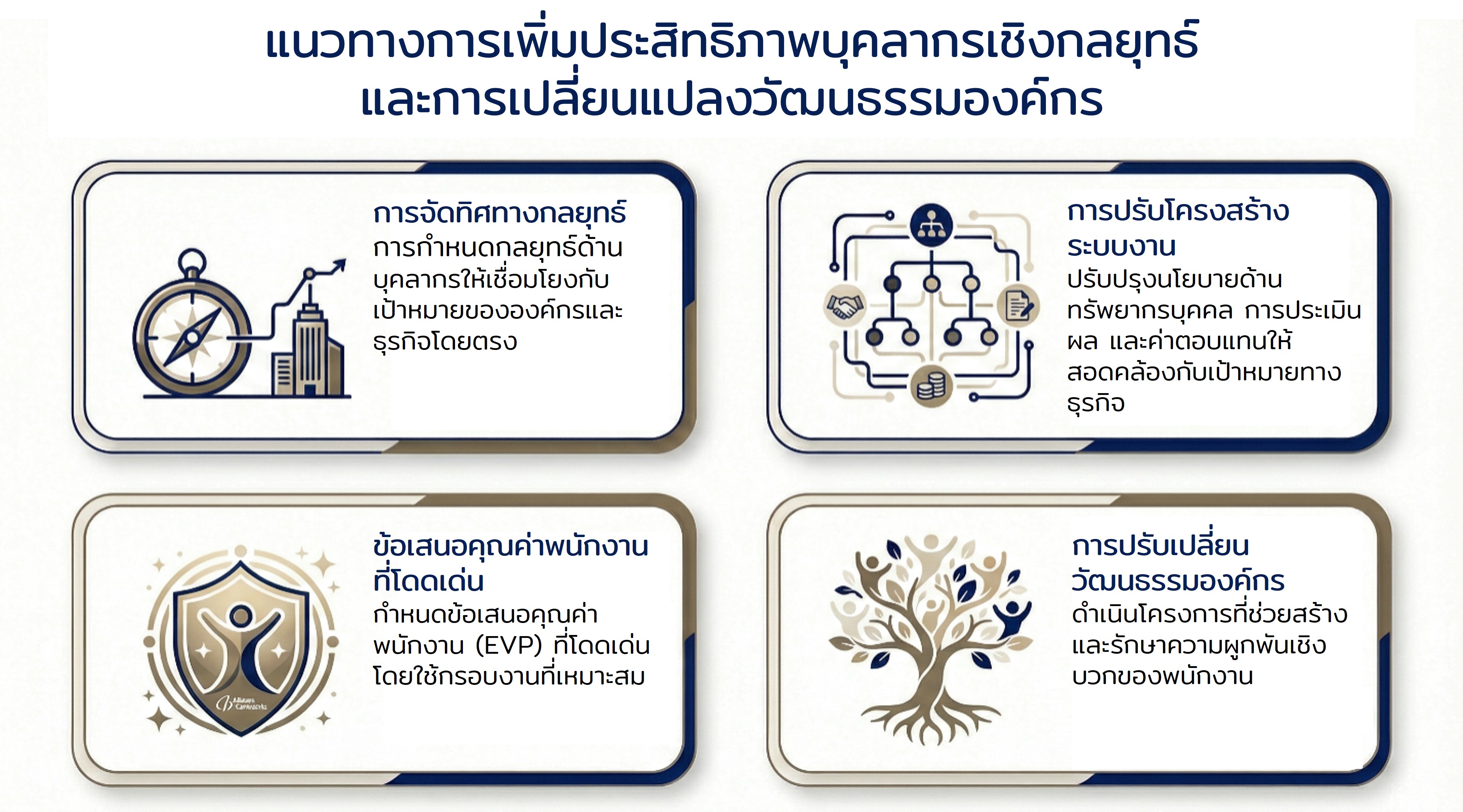 ในสภาพแวดล้อมทางธุรกิจที่เต็มไปด้วยการเปลี่ยนแปลงอย่างรวดเร็ว ทั้งจากการเปลี่ยนผ่านสู่ดิจิทัล และความคาดหวังของแรงงานที่เปลี่ยนไป วัฒนธรรมองค์กรแบบดั้งเดิมกำลังกลายเป็นจุดอ่อน กระบวนการตัดสินใจที่ล่าช้า การอนุมัติตามลำดับชั้นที่ล่าช้า และบรรทัดฐานในการเป็นผู้นำที่ล้าสมัย ล้วนบั่นทอนความคล่องตัวขององค์กรโดยตรง โดยองค์กรที่ประสบความสำเร็จในการดำเนินกลยุทธ์มักมีลักษณะร่วมกันอย่างหนึ่ง นั่นคือการมีวัฒนธรรมองค์กรที่ช่วยเสริมประสิทธิภาพแทนที่จะเป็นอุปสรรคในการทำงาน