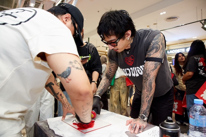 ไฮไลต์ของคอลเลกชันครั้งนี้ คือการร่วมงานกับศิลปินมากเอกลักษณ์อย่าง SOPER เจ้าของผลงาน idonttrustyou ที่มาร่วมถ่ายทอดมุมมองความรักในอีกด้านหนึ่ง - ความรักที่ไม่ได้มีเพียงคำหวาน หากแฝงไว้ด้วยความเจ็บแสบ โดยหยิบแรงบันดาลใจจาก “ประสบการณ์การถูกหลอก” และคำสัญญาที่ไม่อาจเชื่อถือได้ มาถ่ายทอดเป็นผลงานใหม่ที่ฉีกกรอบวาเลนไทน์แบบเดิมๆ สะท้อนแง่มุมความรักที่หลายคนอาจพบเจอ นำเสนอผ่านลายเส้นอันเป็นเอกลักษณ์ ถ่ายทอดลงบนไอเทมของ ลงนวมบอยส์ ที่ผสานกลิ่นอายสปอร์ตเข้ากับงานอาร์ตเชิงประชดประชันได้อย่างลงตัว กลายเป็นไอเทมไฮไลต์ที่ไม่ควรพลาด อาทิ
