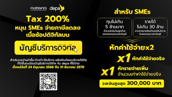 สำหรับผู้ประกอบการที่สนใจสามารถศึกษารายละเอียดเกี่ยวกับมาตรการภาษี 200% และดูผลิตภัณฑ์และบริการดิจิทัลที่ได้รับการขึ้นทะเบียนบนบัญชีบริการดิจิทัลเพิ่มเติมได้ที่ https://short.depa.or.th/tax200