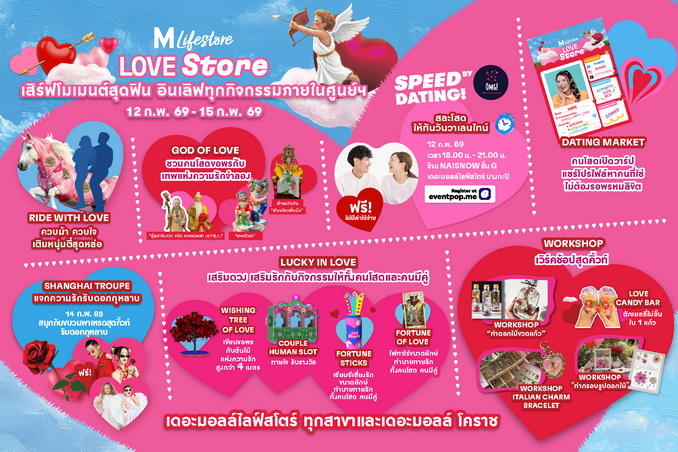 ในปีที่เทศกาลวาเลนไทน์และตรุษจีนเกิดขึ้นในช่วงเวลาใกล้เคียงกัน เดอะมอลล์ไลฟ์สโตร์ ใช้จังหวะของสองเทศกาล เชื่อมโยงมิติของความรัก ความเชื่อ และการเริ่มต้นใหม่ ผ่านแคมเปญ “THE MALL LOVESTORE” ภายใต้คอนเซ็ปต์ “RIDE TO LOVE” ตอกย้ำบทบาทการเป็น Lifestyle Destination ที่สร้างประสบการณ์ให้ผู้คนมีส่วนร่วม นอกเหนือจากการจับจ่าย