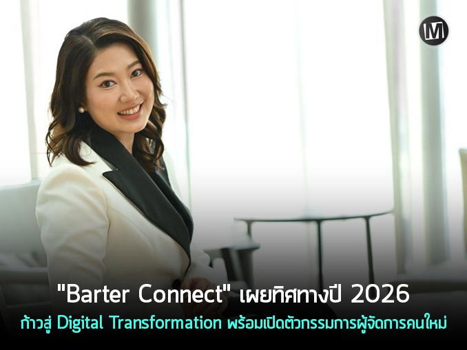 Barter Connect (บาร์เทอร์ คอนเนคท์) ผู้นำแพลตฟอร์มแลกเปลี่ยนสินค้าและบริการแบบไร้เงินสดอันดับ 1 ของประเทศไทย ประกาศก้าวกระโดดครั้งสำคัญในงาน Barter Connect 2026: The Digital Transformation Grand Leap เพื่อประกาศทิศทางและกลยุทธ์การดำเนินงานในปี 2026 ที่มุ่งเน้นการขับเคลื่อนองค์กรผ่านทางดิจิทัลอย่างเต็มรูปแบบ พร้อมเปิดตัว นางลลิตา ศรีกมล ในฐานะ กรรมการผู้จัดการคนใหม่ของ บริษัท บาร์เทอร์ คอนเนคท์ จำกัด ที่เข้ามานำทัพและยกระดับองค์กรสู่การเติบโตในยุคดิจิทัลให้ทันสมัยและตอบโจทย์ความต้องการของผู้ประกอบการในทุกมิติ