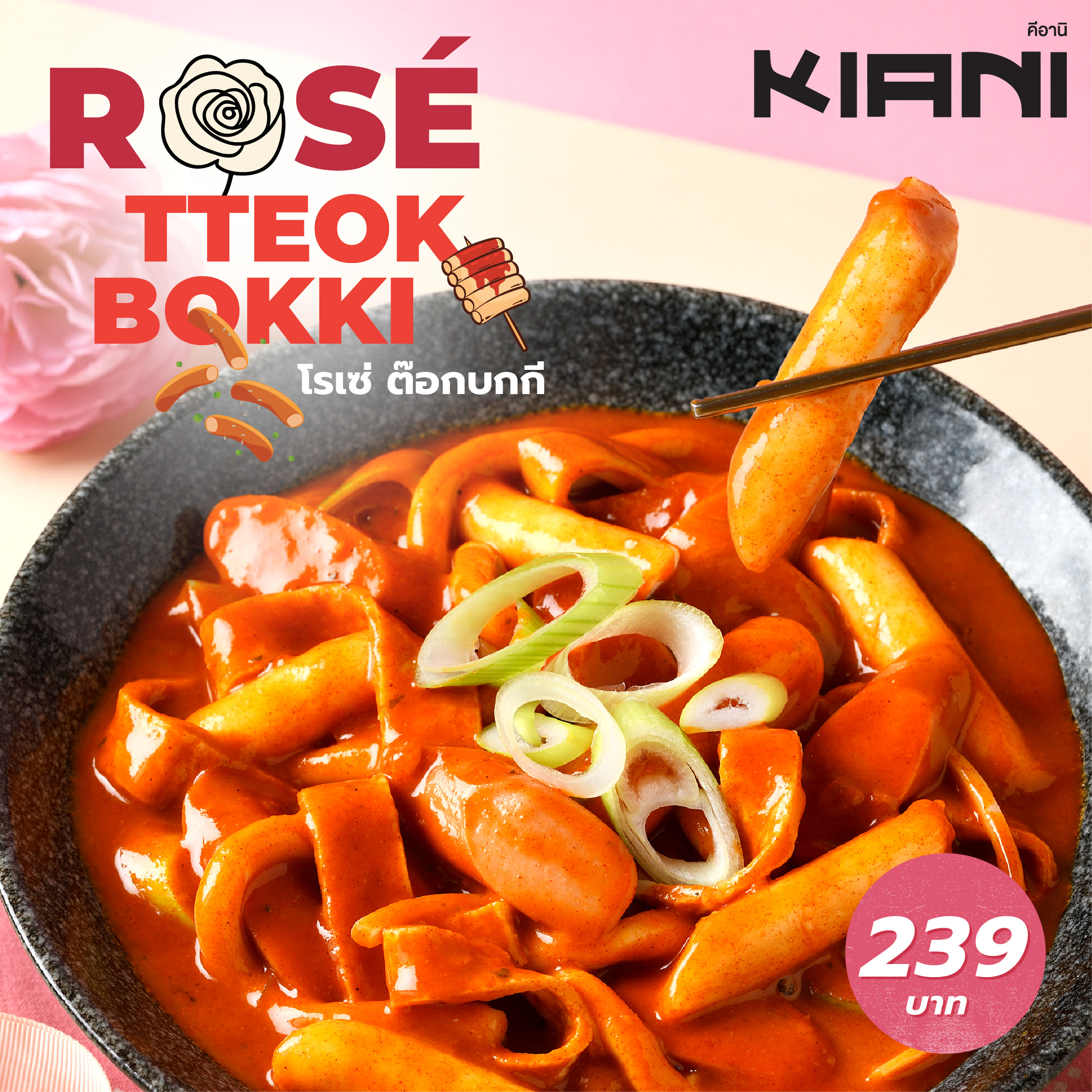 Kiani (คีอานิ) เปิดตัวเมนูพิเศษช่วงวาเลนไทน์ กับ “โรเซ่ ต๊อกบกกี” ต๊อกบกกีซอสครีมสีส้มอมชมพู รสละมุน กลมกล่อม เผ็ดนิดๆ เคี่ยวจนซอสเข้ากันกับเส้นต๊อก คลุกเคล้ากับต๊อกทั้งแบบธรรมดาและต๊อกแบบเส้นนุ่มหนึบ ไส้กรอก และออมุก เหมาะสำหรับการแชร์กับคนพิเศษและทานด้วยกัน เมนูโปรโมชั่นตั้งแต่วันที่ 14 กุมภาพันธ์ จนถึง 30 เมษายน 2569 ที่ KIANI ทุกสาขา