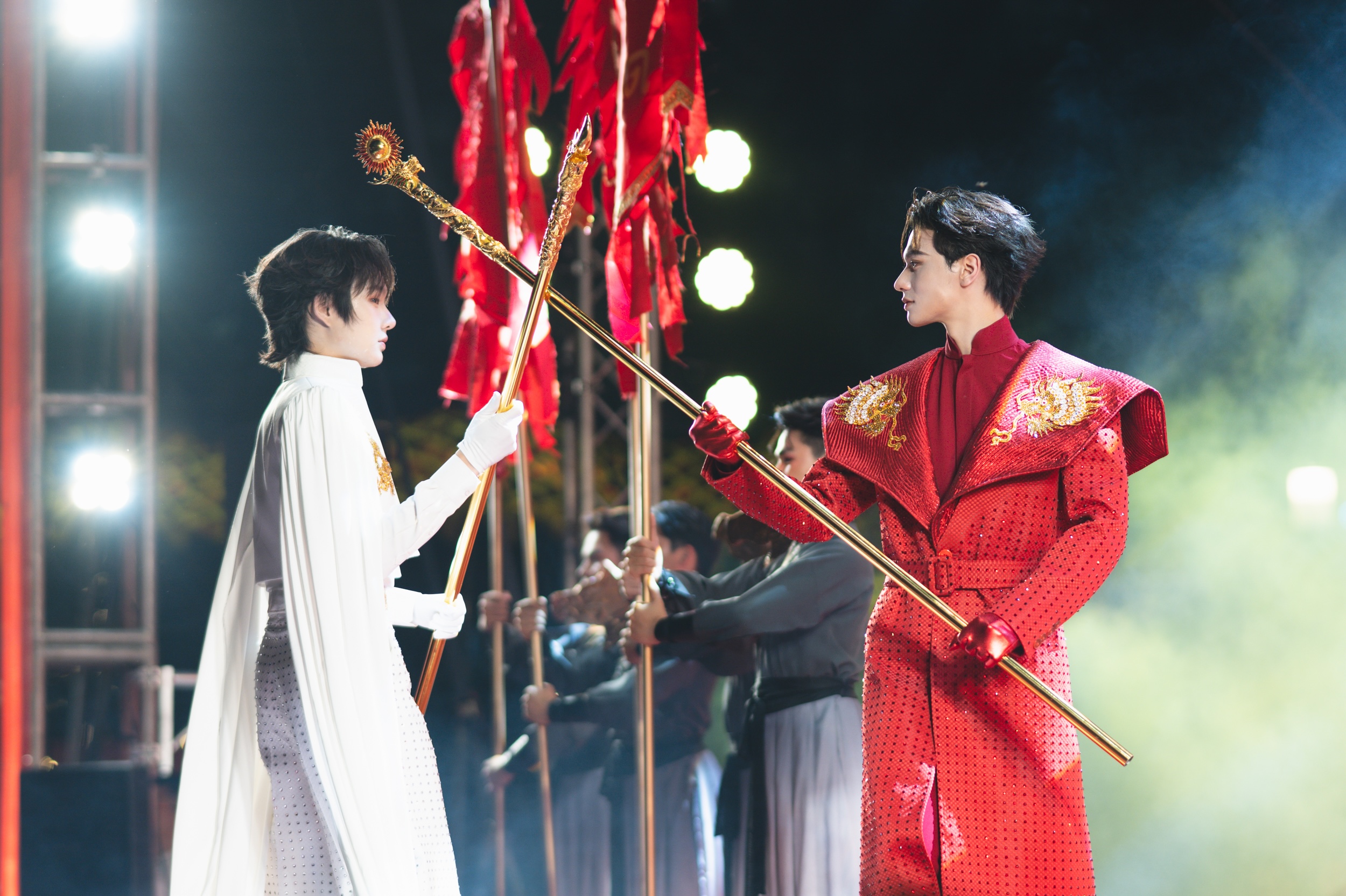 - องก์ 4 "เบิกศักราชเฉลิมฉลอง": "เทพสุริยัน-เทพจันทรา" กลับสู่เวทีอีกครั้ง พร้อม ผืนผ้าแดงและวงแหวนสีทองอันศักดิ์สิทธิ์ ผสานกับการแสดงระบำโคมแดง กายกรรม และการ ตีกลอง ตอกย้ำพลังแห่งการเริ่มต้นใหม่