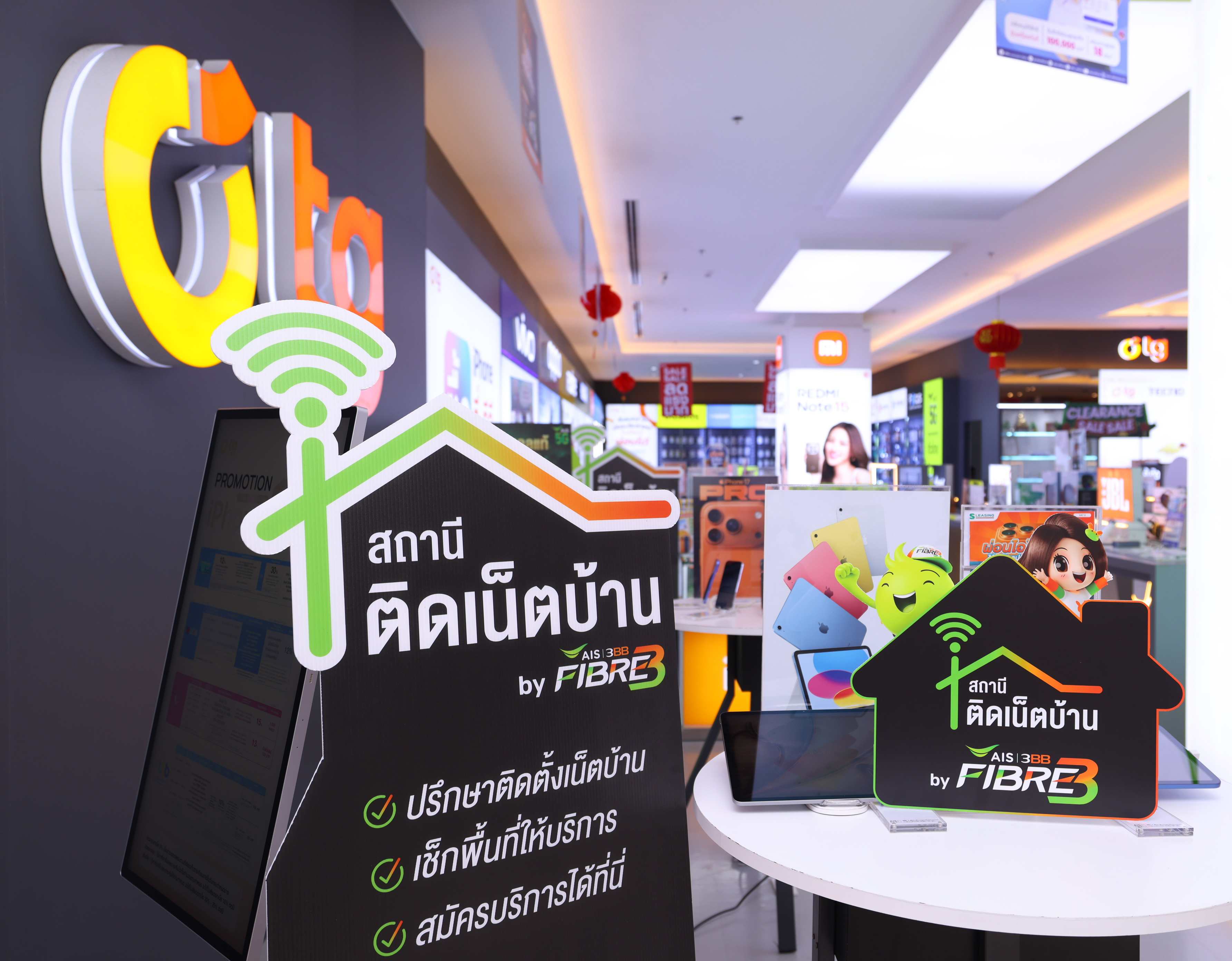 AIS 3BB FIBRE 3 ขยาย “สถานีติดเน็ตบ้าน” จุดให้บริการและติดตั้งอินเทอร์เน็ตบ้าน ที่เพิ่มการให้บริการไปยังร้านไอทีพาร์ทเนอร์ชั้นนำทั่วประเทศ ได้แก่ IT City, Jaymart และ TG Phone รวมถึงช่องทางบริการจาก AIS เพื่อเพิ่มความสะดวกให้กับลูกค้า สามารถเข้าถึงบริการเน็ตบ้านได้ง่าย ครอบคลุมใกล้บ้านยิ่งขึ้น