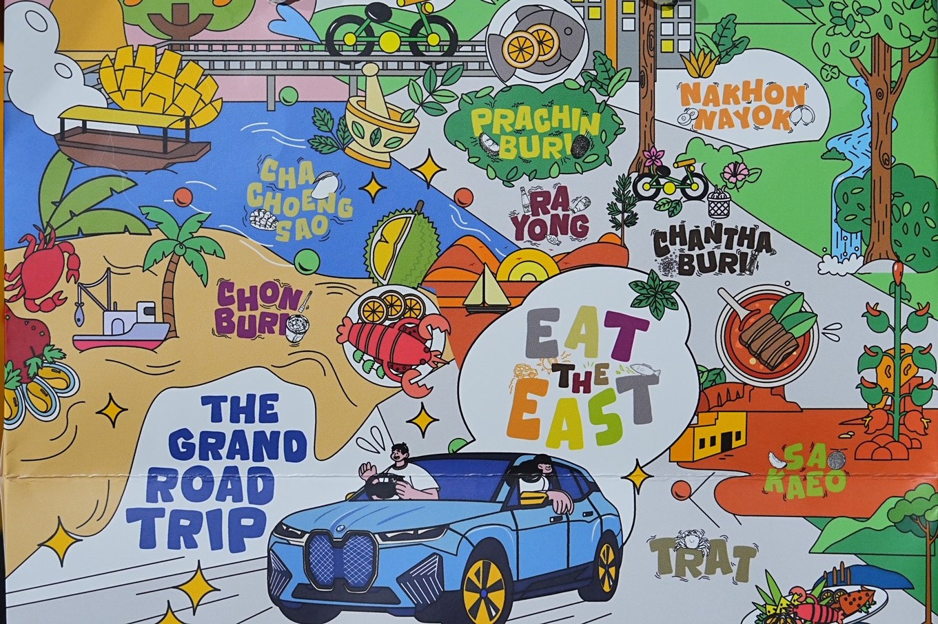 กนกกิตติกา กฤตย์วุฒิกร ผู้อำนวยการภูมิภาคภาคตะวันออก ททท. เผยว่า “ภายใต้แนวคิด ‘สีสันตะวันออก’ เราชูหนึ่งจุดขายสำคัญคือ ‘สีสันสวรรค์นักกิน’ โดยร่วมกับพันธมิตรชั้นนำจัดทำแคมเปญ ‘EAT THE EAST : THE GRAND ROAD TRIP’ เพื่อเชิญชวนนักท่องเที่ยวออกตามหารสชาติของเมืองอันมีเอกลักษณ์ในพื้นที่ 9 จังหวัด ได้แก่ ชลบุรี ระยอง จันทบุรี ตราด นครนายก ปราจีนบุรี สระแก้ว ฉะเชิงเทรา และสมุทรปราการ ผ่านการท่องเที่ยวในรูปแบบ Drive Tourism ค้นหาประสบการณ์ใหม่ที่สนุก มีสีสัน และเต็มไปด้วยรสชาติ