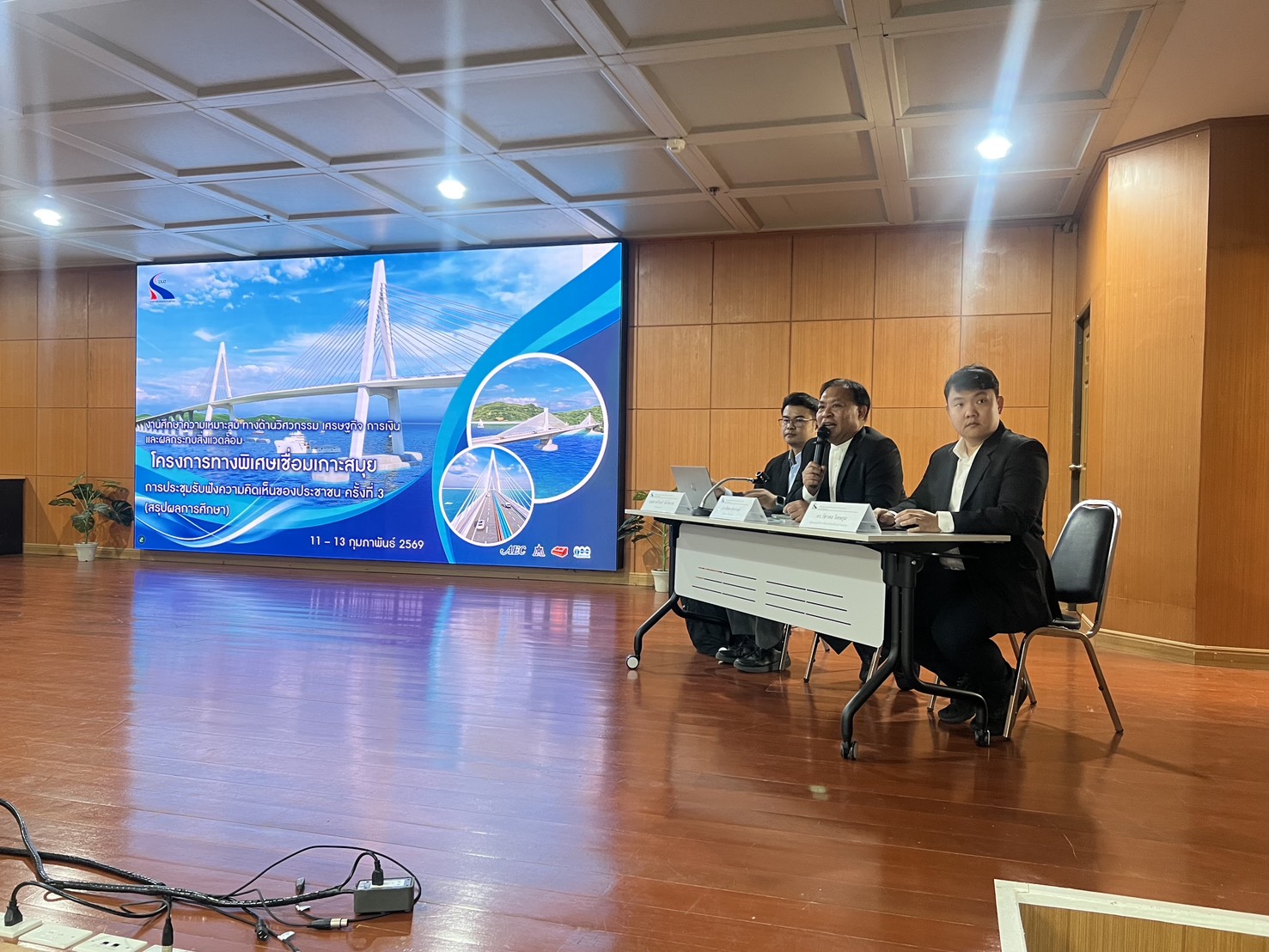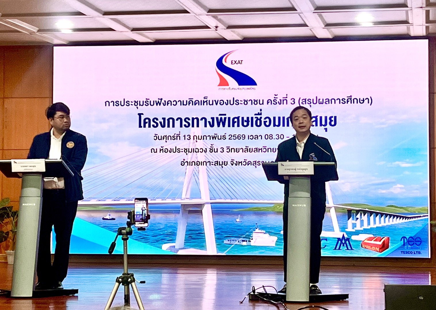 วันนี้ 13 กุมภาพันธ์ 2569 นายสุรเชษฐ์ เหล่าพูลสุข ผู้ว่าการการทางพิเศษแห่งประเทศไทย เป็นประธานในพิธีเปิดการประชุมรับฟังความคิดเห็นของประชาชน ครั้งที่ 3 (สรุปผลการศึกษา) งานศึกษาความเหมาะสมทางด้านวิศวกรรม เศรษฐกิจ การเงิน และผลกระทบสิ่งแวดล้อม โครงการทางพิเศษเชื่อมเกาะสมุย โดยมีนายพชร ทองสุข ปลัดอำเภอเกาะสมุย (เจ้าพนักงานปกครองชำนาญการพิเศษ) กล่าวต้อนรับ ณ ห้องประชุมเฉวง วิทยาลัยสหวิทยาการเกาะสมุย มหาวิทยาลัยราชภัฏสุราษฎร์ธานี อำเภอเกาะสมุย จังหวัดสุราษฎร์ธานี