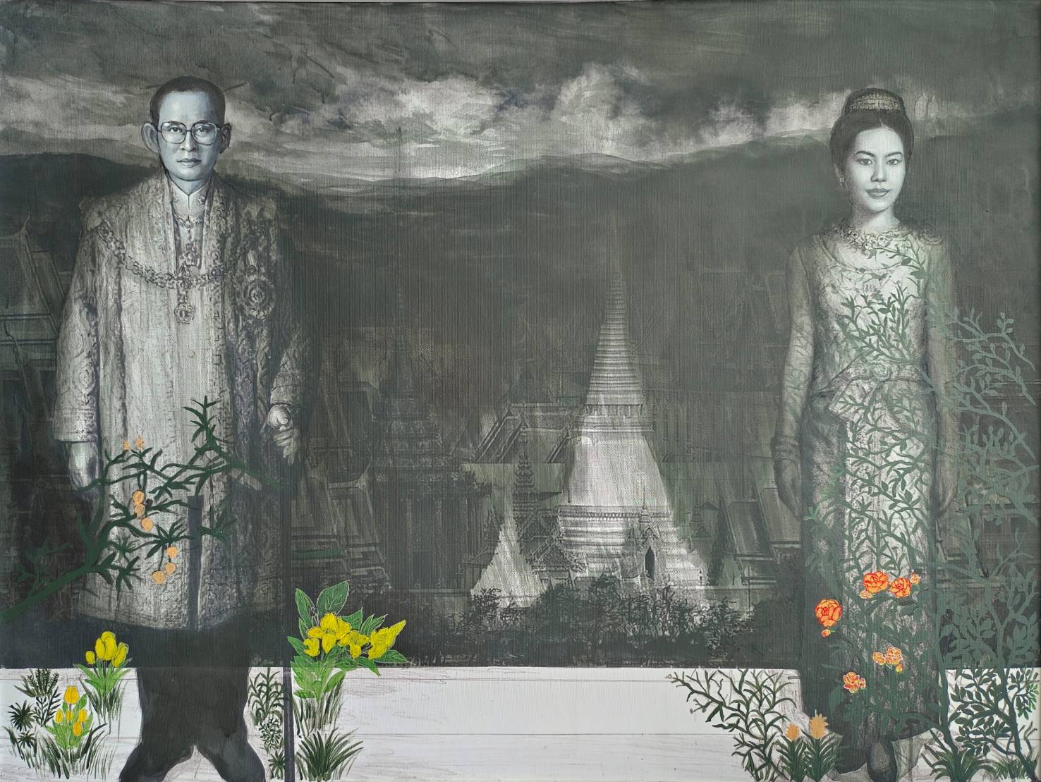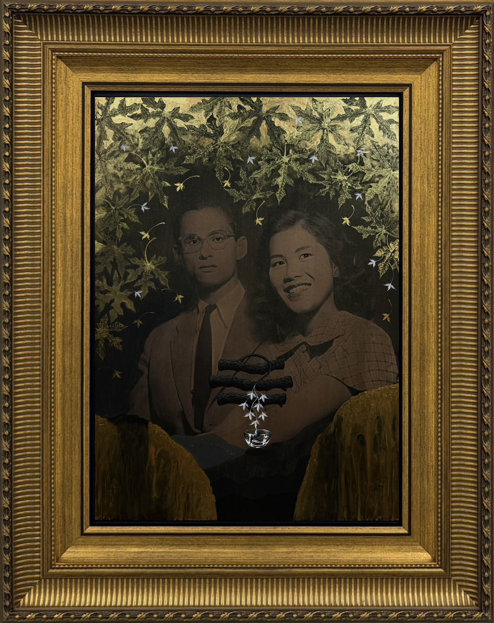 นำเสนอผลงาน จิตรกรรมเทคนิคผสม ที่จัดแสดงภาพพระบรมฉายาสาทิสลักษณ์ พระบาทสมเด็จ พระบรมชนกาธิเบศร มหาภูมิพลอดุลยเดชมหาราช บรมนาถบพิตร และ สมเด็จพระนางเจ้าสิริกิติ์ พระบรมราชินีนาถ พระบรมราชชนนีพันปีหลวง เพื่อแสดงความสำนึกในพระมหากรุณาธิคุณ และน้อมรำลึกถึงพระราชปณิธานอันมั่นคง ตลอดจนพระราชกรณียกิจที่เปี่ยมคุณูปการต่อผืนแผ่นดินและประชาชน ผลงานชุดนี้ถ่ายทอด “ความเคารพจากหัวใจ” ผ่านท่วงทำนองของสี เส้น และชั้นเชิงแห่งวัสดุ สร้างบรรยากาศสงบ งดงาม และสง่างาม ชวนผู้ชมวางความเร่งรีบของชีวิตลงชั่วครู่ เพื่อพิจารณาความหมายของคำว่า “กราบ” และ “สักการะ” ในฐานะการระลึกถึงพระมหากรุณาธิคุณที่ยังคงสถิตในความทรงจำร่วมของสังคมไทย