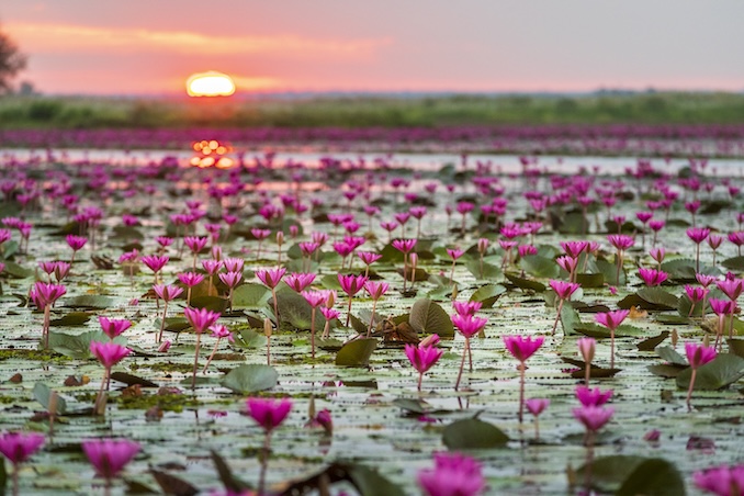 ในส่วนของภาคตะวันออกเฉียงเหนือ ลิซ่าได้นำผู้ชมเข้าสู่ Feelings ที่นุ่มลึกมีเสน่ห์เฉพาะตัว เมื่อ ทะเลสาบบัวแดง จังหวัดอุดรธานี ท่ามกลางแสงเช้าสีทอง ดอกบัวแดงนับหมื่นดอกบานสะพรั่งเต็มผืนน้ำกลายเป็น ทะเลบัวแดงอันงดงาม ราวกับถูกย้อมด้วยพรมสีชมพูขนาดใหญ่สุดลูกหูลูกตา ทำให้ผู้มาเยือนได้รู้สึกสงบผ่อนคลาย ราวกับธรรมชาติกำลังแต้มสีสันและความสดใสลงบนผืนน้ำ