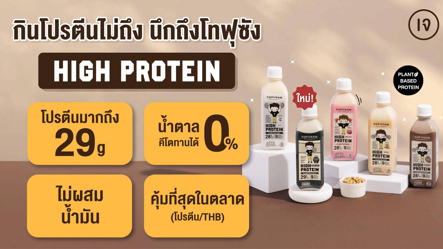 - Market Opportunity: โทฟุซังมองเห็น Pain Point ของกลุ่มคนออกกำลังกายที่ต้องการโปรตีนสูงในรูปแบบ Plant-based แต่ต้องการเลี่ยงนมวัว
