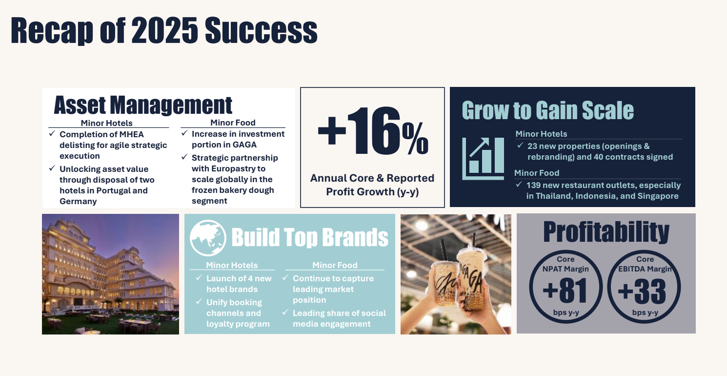 บริษัท ไมเนอร์ อินเตอร์เนชั่นแนล จำกัด (มหาชน) หรือ MINT รายงานผลประกอบการปี 2568 ที่สะท้อนถึงการบริหารจัดการระดับโลก โดยกำไรจากการดำเนินงานในไตรมาส 4 ปี 2568 อยู่ที่ 3,472 ล้านบาท เติบโต 21% เมื่อเทียบกับช่วงเดียวกันของปีก่อน ส่งผลให้กำไรทั้งปีขยับขึ้นมาอยู่ที่ 9,700 ล้านบาท