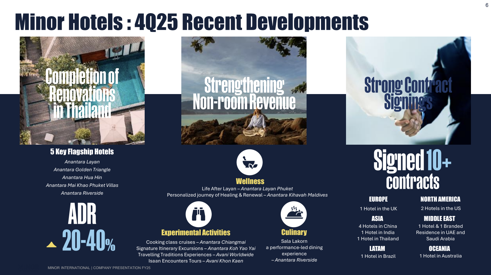 ดิลลิป ราชากาเรีย ประธานเจ้าหน้าที่บริหารกลุ่ม MINT ระบุว่า ปี 2568 คือปีที่บริษัทพิสูจน์ความสามารถในการแปลงรายได้ให้เป็นกำไรที่มีคุณภาพ และจะส่งต่อโมเมนตัมนี้ไปยังปี 2569 โดยตั้งเป้าสร้างสถิติใหม่ (Record Year) ในการเซ็นสัญญาบริหารโรงแรม (Management Contracts) และขยายธุรกิจผ่านโมเดล Asset-Light เพื่อลดความเข้มข้นของการใช้เงินทุนและเพิ่มผลตอบแทนให้แก่ผู้ถือหุ้นในระยะยาว