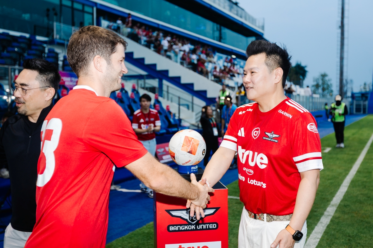 เกมใหญ่ที่แฟนบอลรอคอยกลับมาทำสนามลุกเป็นไฟอีกครั้ง เมื่อ ทรู แบงค็อก ยูไนเต็ด เปิดบ้านทรู บีจี สเตเดียม รับการมาเยือนของ เมืองทอง ยูไนเต็ด ในศึกไทยลีก 2025/26 ท่ามกลางบรรยากาศเชียร์สุดเดือดแบบ “แน่นทุกโซน” โดย ทรู คอร์ปอเรชั่น เดินหน้าสนับสนุนฟุตบอลไทยอย่างต่อเนื่อง ร่วมส่งแรงใจข้างสนาม นำโดย นายขจร เจียรวนนท์ ประธานสโมสรทรู แบงค็อก ยูไนเต็ด พร้อมด้วย บมจ.ทรู คอร์ปอเรชั่น โดย นายโอลิเวอร์ กิตติพงษ์ วีระเตชะ หัวหน้าคณะผู้บริหารด้านแบรนด์และมีเดีย ร่วมส่งพลังไปกับแฟนบอลที่พร้อมใจกันเชียร์สุดเสียงตั้งแต่นกหวีดแรก ทำให้บรรยากาศในสนามคึกคัก และสมศักดิ์ศรี “บิ๊กแมตช์ของจริง” พร้อมกันนี้ ทรูยังอัปสัญญาณ ทรู5G ให้ครอบคลุมทุกโซนของทรู บีจี สเตเดียม รองรับการใช้งานของแฟนบอลอย่างเต็มประสิทธิภาพ ทั้งการไลฟ์ แชร์โมเมนต์ และอัปโหลดความมันแบบเรียลไทม์ ด้วยสัญญาณแรงเร็ว เสถียรตลอดการแข่งขัน