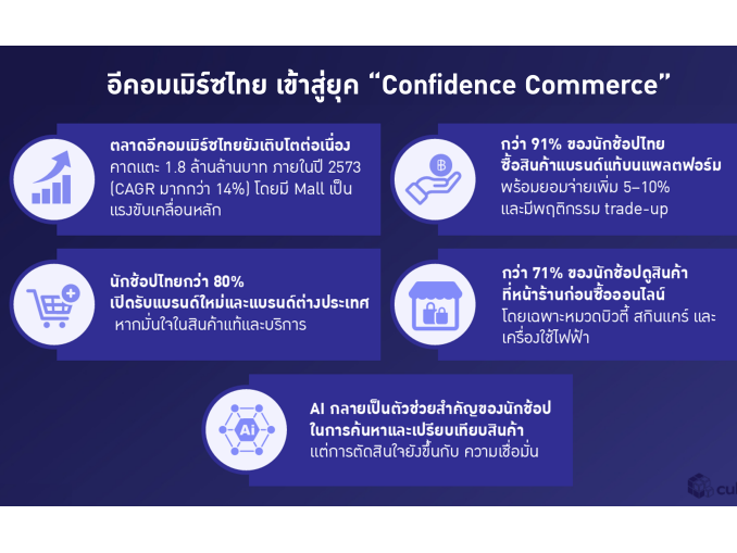 ภีม เบ็ญจศิริวรรณ ผู้จัดการฝ่ายกลยุทธ์และข้อมูลเชิงลึก CUBE INSIGHTS ให้ข้อมูลเพิ่มเติมว่า “ประเทศไทยถือเป็นหนึ่งในตลาดที่มีการทำธุรกรรมผ่านแพลตฟอร์มรูปแบบ Mall สูงที่สุดในเอเชียตะวันออกเฉียงใต้ โดยผลสำรวจระบุว่ากว่า 91% ของนักช้อปไทยซื้อสินค้าแบรนด์แท้ผ่าน Mall เป็นประจำ ตัวเลขนี้สะท้อนให้เห็นว่าการช้อปปิงผ่านร้านค้าทางการบน Mall ได้กลายเป็นส่วนหนึ่งของพฤติกรรมในชีวิตประจำวันของผู้บริโภคชาวไทย โดยไม่ได้จำกัดอยู่เพียงแค่การซื้อสินค้าพรีเมียมหรือการช้อปในโอกาสพิเศษอีกต่อไป”