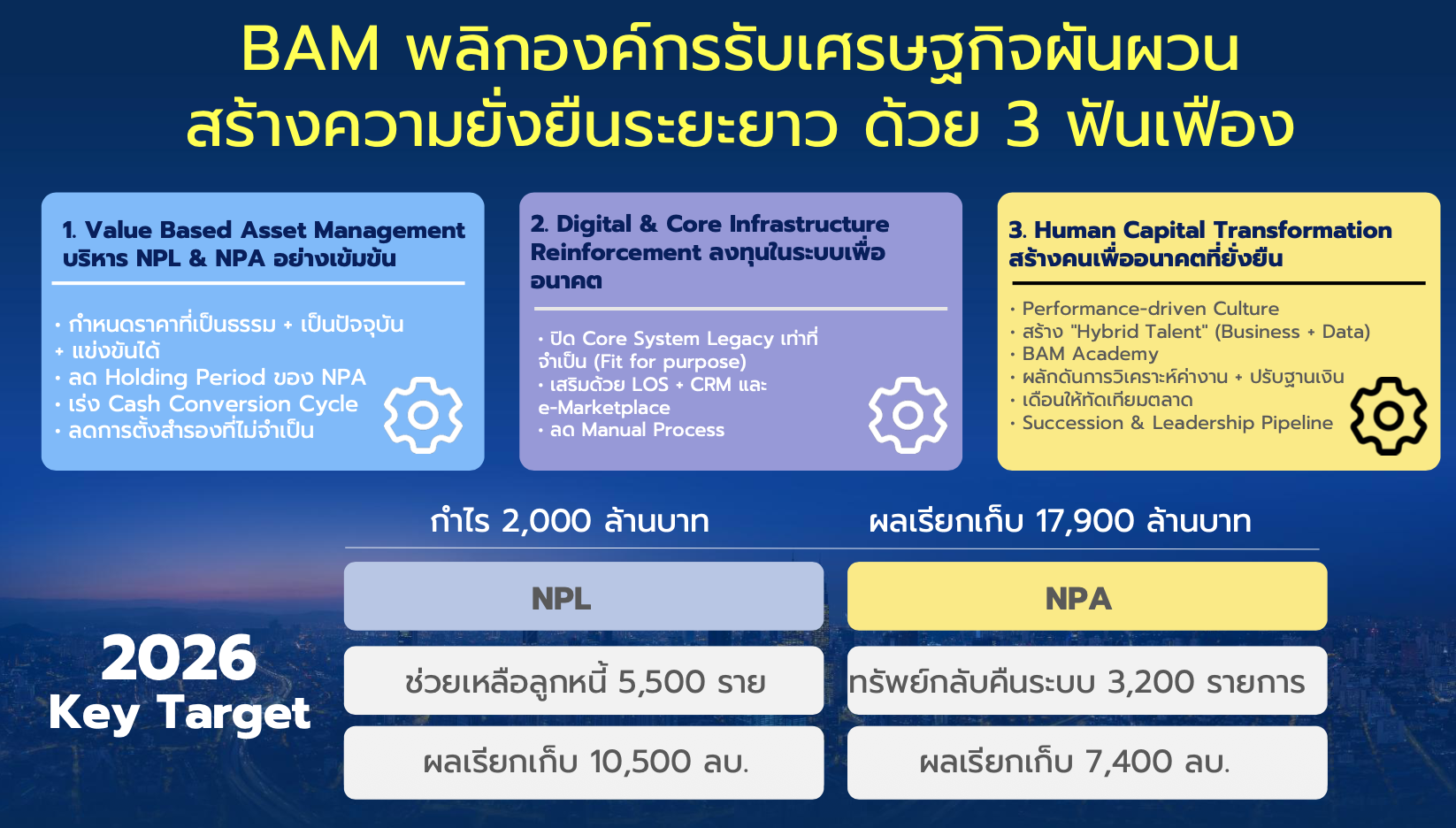BAM ใช้กลยุทธ์ “ 3 ฟันเฟือง” สำหรับฝ่ามรสุมเศรษฐกิจ ประกอบด้วย
