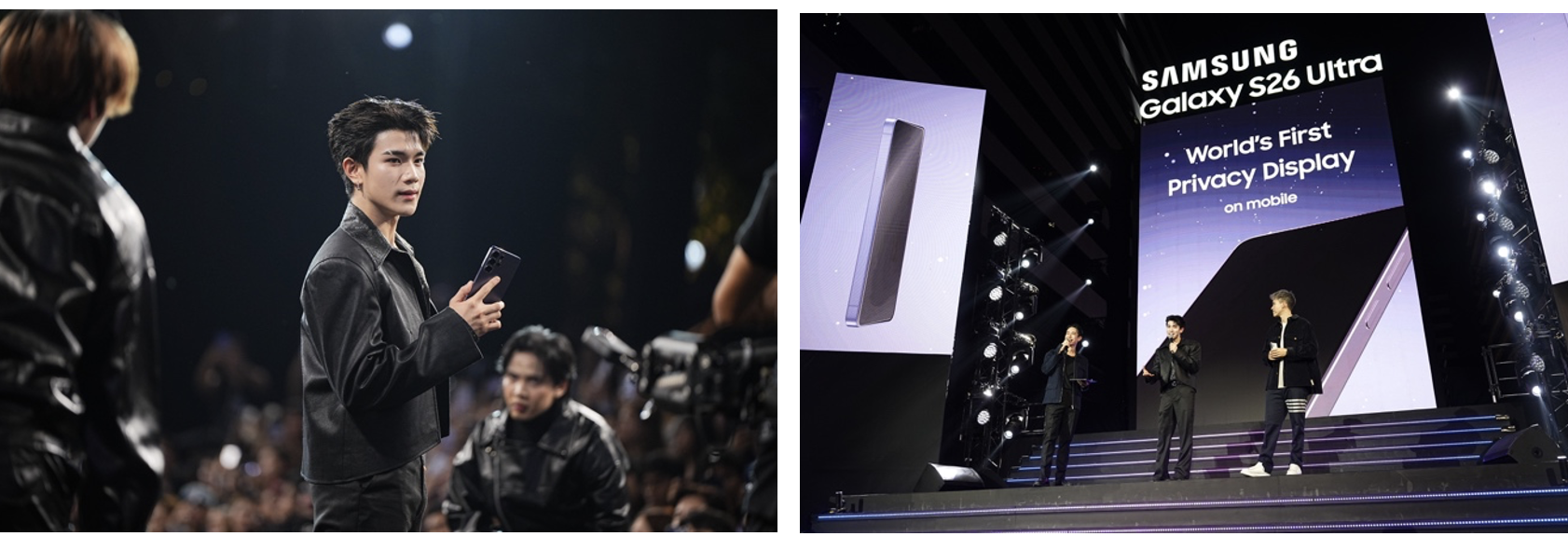 ปิดท้ายด้วยโชว์ไฮไลต์ของงานกับ Privacy Display Show เปิดตัวเทคโนโลยีจอมือถือเพื่อความเป็นส่วนตัวครั้งแรกของโลกบน Galaxy S26 Ultra โดยได้ โฟร์ท ณัฐวรรธน์ มาร่วมสาธิตการใช้งานฟีเจอร์ ที่ช่วยจำกัดมุมมองของหน้าจอให้เห็นชัดเฉพาะผู้ใช้งานด้านหน้า ลดการมองเห็นจากบุคคลรอบข้าง พร้อมโชว์ความสามารถเปิด–ปิดการทำงานได้ตามต้องการในแต่ละแอปพลิเคชันและแต่ละส่วนของหน้าจอ