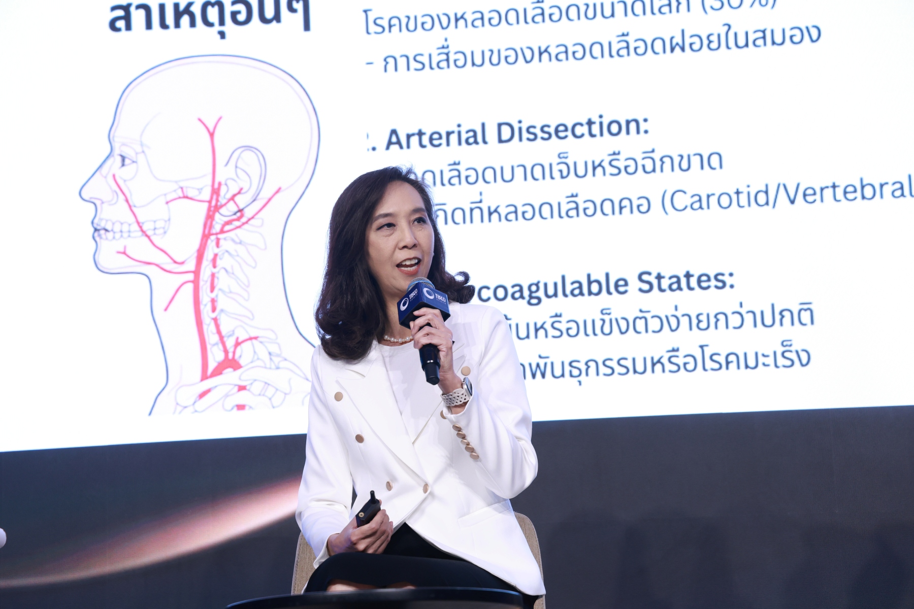 ปิดท้ายด้วยเวทีเสวนาด้านสุขภาพที่รวบรวมองค์ความรู้เชิงลึกจากอาจารย์แพทย์ระดับแนวหน้าของประเทศจาก 3 สถาบันชั้นนำ ครอบคลุมประเด็นโรคไม่ติดต่อเรื้อรัง (NCDs) ทั้งโรคหลอดเลือดสมอง โรคมะเร็ง และโรคหัวใจและหลอดเลือด พร้อมอัปเดตนวัตกรรมการรักษาที่ช่วยยกระดับคุณภาพชีวิตและ Well-being ของคนไทยในระยะยาว เริ่มจาก ศาสตราจารย์ แพทย์หญิงนิจศรี ชาญณรงค์ หัวหน้าศูนย์ประสาทศาสตร์ และแพทย์ผู้เชี่ยวชาญด้านระบบประสาท และโรคหลอดเลือดสมอง คณะแพทยศาสตร์ จุฬาลงกรณ์มหาวิทยาลัย ชี้ให้เห็นถึงความรุนแรงของโรคหลอดเลือดสมอง ซึ่งเป็นสาเหตุการเสียชีวิตอันดับหนึ่งของคนไทย พร้อมเน้นย้ำปัจจัยเสี่ยงสำคัญจากพฤติกรรมการใช้ชีวิต เช่น ความดันโลหิตสูง เบาหวาน ไขมันในเลือดสูง และการสูบบุหรี่ โดยโรคดังกล่าวสามารถป้องกันได้ถึง 90% หากดูแลสุขภาพอย่างถูกต้อง ควบคู่กับการสังเกตสัญญาณเตือนเพื่อเข้ารับการรักษาอย่างทันท่วงที