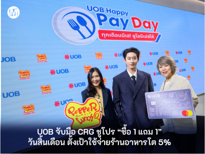 UOB Happy Payday สิทธิพิเศษ “ซื้อ 1 แถม 1” ทุกวันที่ 30 ของเดือน ทางธนาคารยูโอบีร่วมมือ กับ CRG จัดแคมเปญอย่างต่อเนื่องระหว่างเดือนกุมภาพันธ์ – กรกฎาคม 2569 ครอบคลุมร้านอาหารในเครือ CRG ทุกสาขาทั่วประเทศที่เข้าร่วมรายการ โดยสามารถติดตามรายละเอียดและกิจกรรมเซอร์ไพรส์ได้ตลอดปี ที่ LINE Official Account @UOBThai และ Facebook UOB.TH