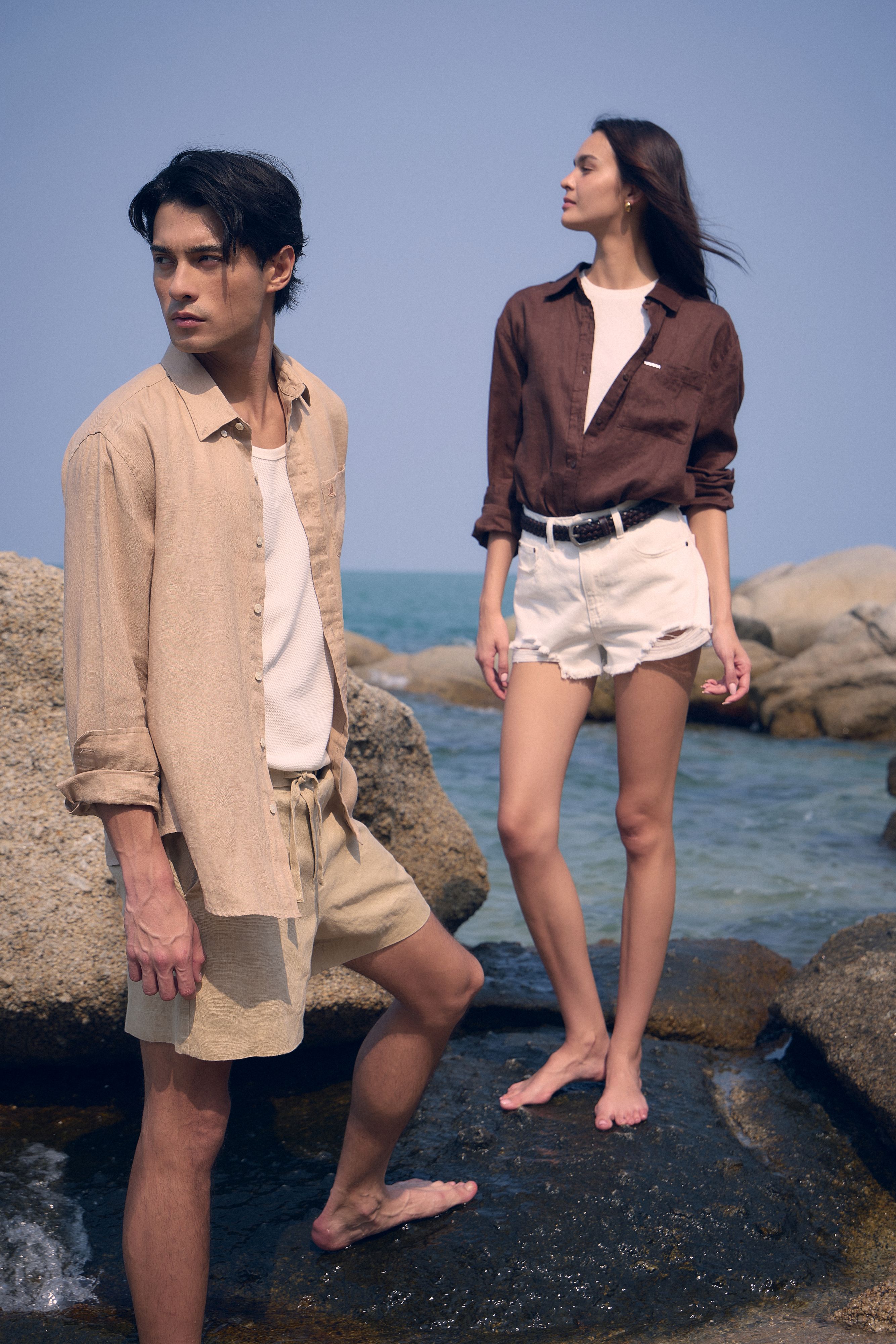 พร้อมแขกรับเชิญคนพิเศษ เอม - สรรเพชญ์ คุณากร นักแสดงหนุ่มหล่อมากความสามารถที่มีสไตล์อันเป็นเอกลักษณ์ และ แตน - สาธิตา นันทศรีรัตน์ อินฟลูเอนเซอร์สายแฟชั่นเจ้าของเพจ Weartoworkstyle ที่มาแชร์ไอเดียคอมพลีตลุคด้วยลินินให้โดดเด่นในทุกสถานการณ์ด้วยไอเทมจาก CC DOUBLE O Premium LINEN 2026 Collection เริ่มต้นกันที่ เอม - สรรเพชญ์ ให้ไอเดีย 2 ลุคสำหรับผู้ชายได้ไปแต่งตามกัน 1) Smart Casual ลุคที่บาลานซ์ระหว่างความ Formal และ Casual ไว้ด้วยกันอย่างลงตัวด้วยการสวม Tank สีขาวด้านในและเพิ่มเลเยอร์เพิ่มความน่าสนใจให้ลุคด้วยเชิ้ตลินินสีกรม คอมพลีตลุคด้วยกางเกงขายาวทรงกว้างลาย Striped 2) Easy Style เชิ้ตลินินแขนยาวสีขาว แมตซ์กับกางเกงยีนส์ตัวโปรดก็สามารถโดดเด่นไปกับ Everyday Look ในวันที่ต้องการความชิลแต่คงความมีสไตล์ตามแบบฉบับของตัวเอง