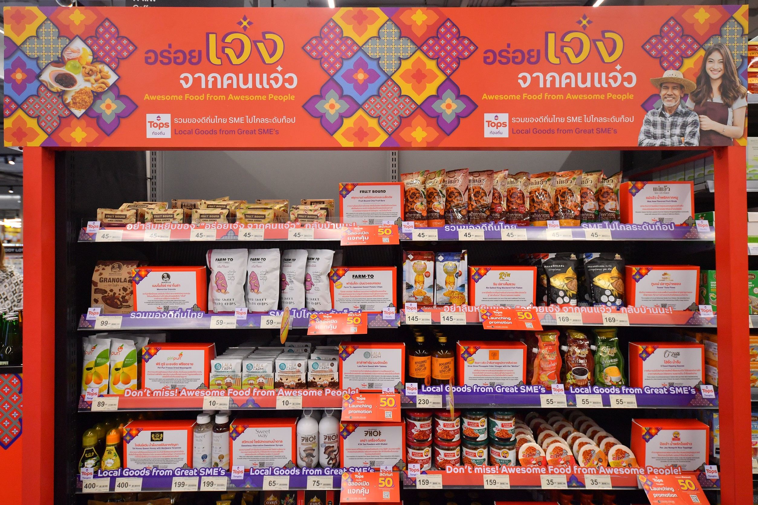 โดยมีสินค้าภายใต้โครงการวางจำหน่ายรวมกว่า 550 รายการ และสามารถสร้างยอดขายเติบโตกว่า 50% สะท้อนศักยภาพของสินค้าไทยที่พร้อมแข่งขันในตลาดโมเดิร์นเทรดระดับประเทศ ตลอดจนความเชื่อมั่นของผู้ประกอบการ โดยจากการดำเนินงานในปี 2568 ที่ผ่านมา ได้รับการตอบรับอย่างดี โดยเฉพาะการจัดงาน “เปิดบ้าน TOPS ท้องถิ่น” ในพื้นที่ภาคตะวันออกเฉียงเหนือตอนล่าง มีผู้ประกอบการสมัครเข้าร่วมกว่า 150 ราย และได้รับการคัดเลือกเข้าสู่กระบวนการ Business Matching กับทีมจัดซื้อโดยตรงถึง 100 ราย