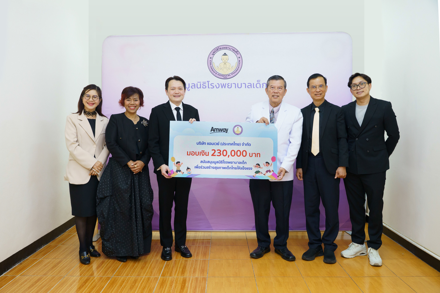 บริษัท แอมเวย์ (ประเทศไทย) จำกัด โดย นายทศพร นิษฐานนท์ กรรมการผู้จัดการ พร้อมตัวแทนคณะกรรมการกิจกรรมเพื่อสังคม ผสานต่อพลังแห่งการให้อย่างไม่หยุดนิ่ง ร่วมสนับสนุนการพัฒนาคุณภาพชีวิตและมอบโอกาสให้เด็ก ๆ ได้เติบโตแข็งแรงและเป็นกำลังสำคัญของประเทศในอนาคต โดยร่วมมอบเงินสนับสนุนแก่องค์กรที่ทำงานเพื่อเด็กและสังคม จำนวน 430,000 บาท ได้แก่