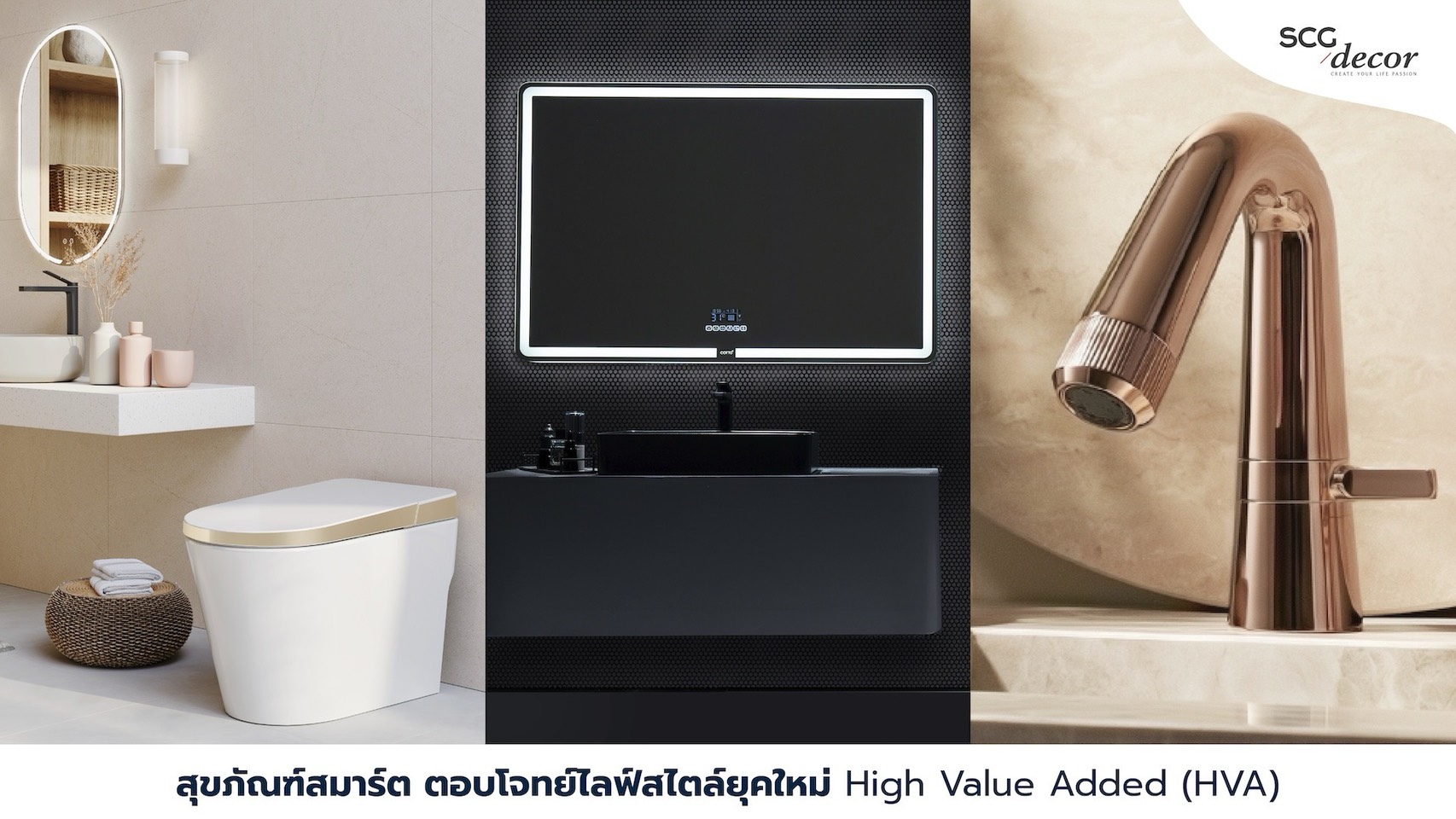 สำหรับ ธุรกิจสุขภัณฑ์ SCGD เดินหน้าขยายส่วนแบ่งตลาดในไทย ผ่านการพัฒนาสินค้าและผลิตภัณฑ์ ที่ครอบคลุมทุกกลุ่มเป้าหมาย โดยต่อยอดจากความเข้าใจผู้บริโภคอย่างลึกซึ้ง ทั้งกลุ่มที่มองหานวัตกรรมและความสะดวกสบายผ่านสุขภัณฑ์ Smart ที่ตอบโจทย์ไลฟ์สไตล์ยุคใหม่ และกลุ่มที่ให้ความสำคัญกับความคุ้มค่า ผ่านผลิตภัณฑ์คุณภาพมาตรฐานในราคาที่เข้าถึงได้ (Smart Value Products: SVP) อาทิ สุขภัณฑ์แบรนด์ sosuco ก๊อกน้ำแบรนด์ Prema เพื่อรองรับกำลังซื้อที่หลากหลายในภาวะเศรษฐกิจชะลอตัว ขณะเดียวกัน มีแผนการเพิ่มประสิทธิภาพโรงงานผลิตสุขภัณฑ์อย่างต่อเนื่อง เพื่อเพิ่มขีดความสามารถการแข่งขันในระดับโลก และเพิ่มยอดขายในตลาดต่างประเทศในระยะยาว