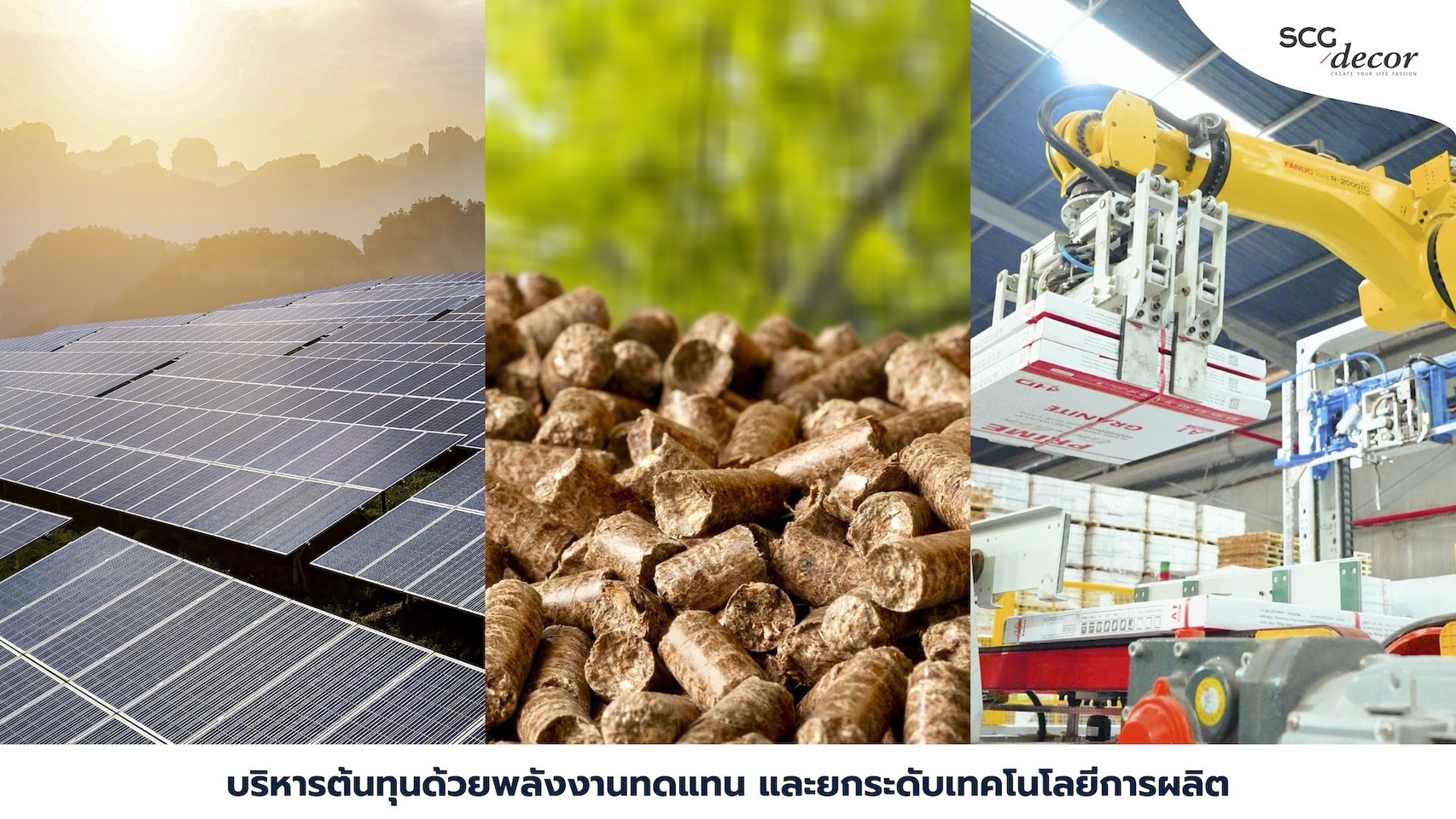 ขณะเดียวกัน จากแนวโน้มราคาน้ำมันและพลังงานที่อาจเผชิญความผันผวน SCGD ได้วางรากฐานการ ลดการพึ่งพาพลังงานฟอสซิลและลดความเสี่ยงด้านราคาพลังงาน มาตั้งแต่ปี 2566 ผ่านการเพิ่มสัดส่วนการ ใช้เชื้อเพลิงชีวมวลอย่างต่อเนื่อง และในปีนี้ยังคงเดินหน้าต่อยอดเป้าหมายดังกล่าว เพื่อเสริมความสามารถในการบริหารต้นทุนและเพิ่มความยืดหยุ่นในการดำเนินธุรกิจ โดยในปี 2568 สามารถใช้เชื้อเพลิงชีวมวลทดแทนก๊าซธรรมชาติและถ่านหินได้มากกว่า 23.5% และตั้งเป้าเพิ่มเป็น 34.5% ในปี 2569 ขณะเดียวกัน การใช้พลังงานแสงอาทิตย์คิดเป็น 13.6% ของการใช้ไฟฟ้ารวม และตั้งเป้าเพิ่มเป็น 14% ซึ่งสะท้อนแนวทางการบริหารต้นทุนควบคู่กับการดำเนินธุรกิจอย่างยั่งยืน โดยตั้งเป้าลดต้นทุนเพิ่มอีกปีละ 80 ล้านบาท