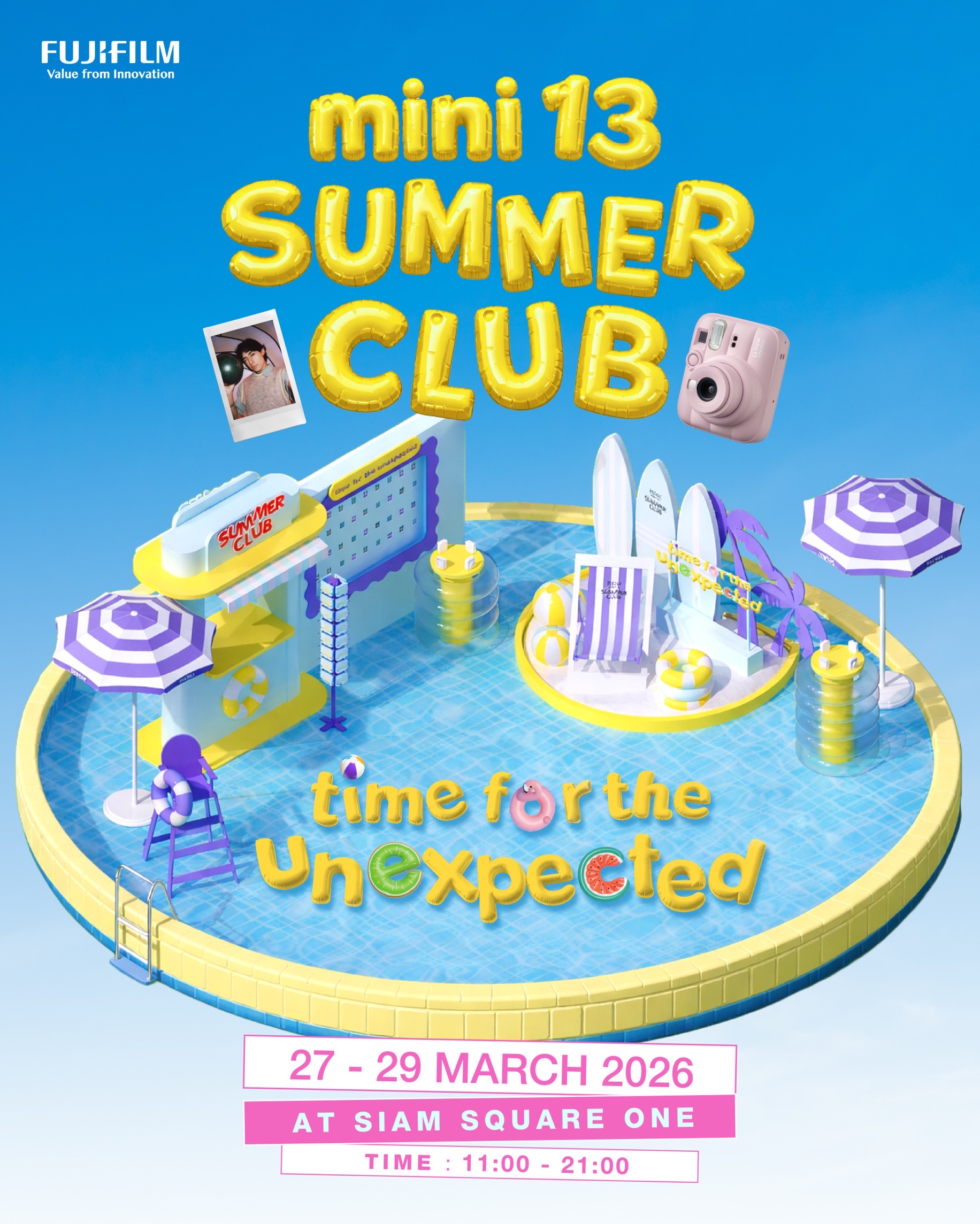 เพื่อสร้างสีสันรับซัมเมอร์ ฟูจิฟิล์มยังเตรียมจัดป็อปอัพอีเวนต์ “instax mini 13 Summer Club” บริเวณทางเชื่อม BTS Siam และ Siam Square One ระหว่างวันที่ 27–29 มีนาคม 2569 เวลา 11.00–21.00 น. ภายในงานจะมีกิจกรรมให้ร่วมสนุก ทดลองฟีเจอร์ของกล้องรุ่นใหม่อย่างใกล้ชิด และลุ้นรับของรางวัลพิเศษ