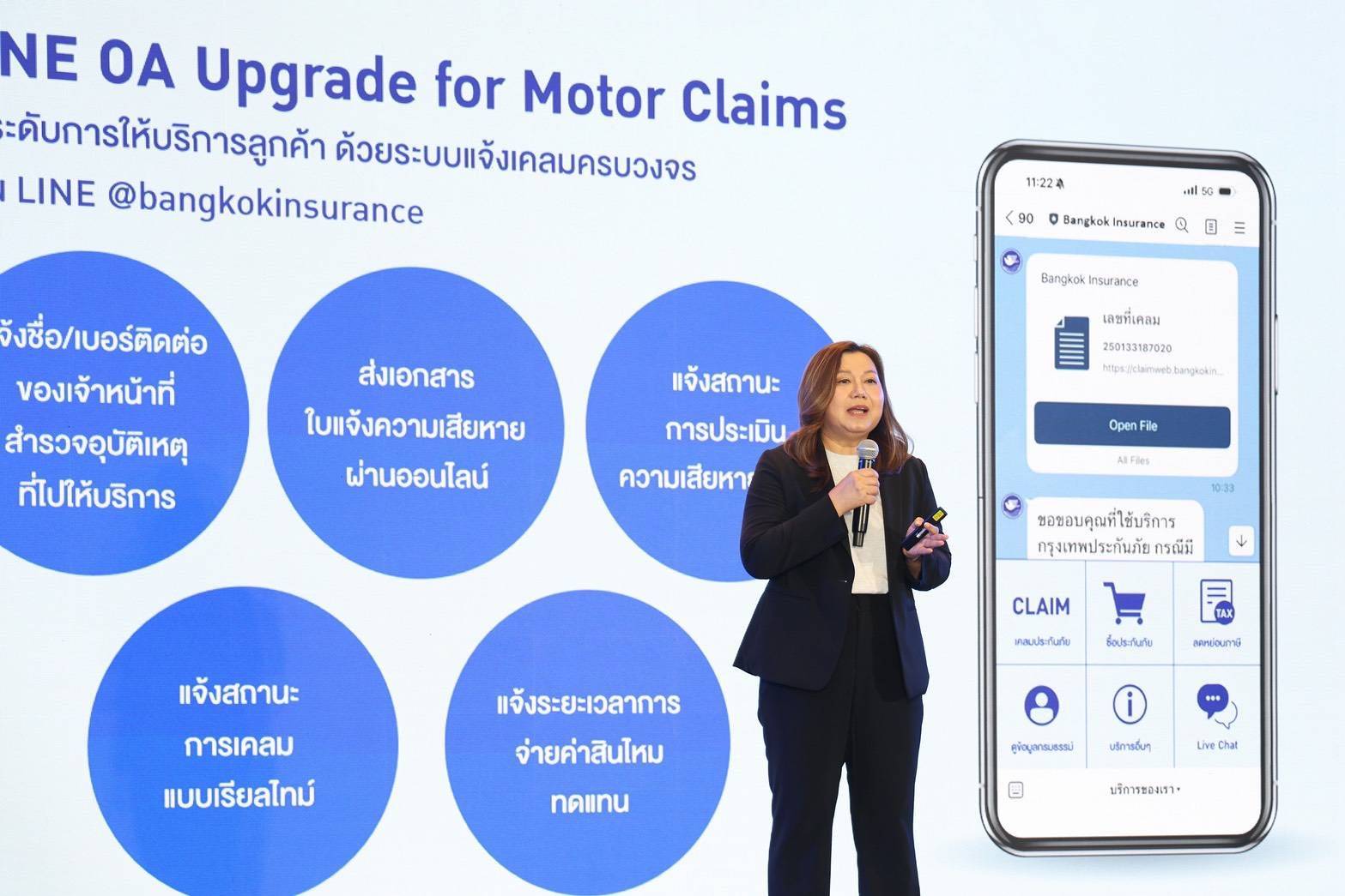 ในปี 2569 บริษัทจึงเดินหน้าประยุกต์ใช้เทคโนโลยีหลายด้าน ทั้งการอัปเกรดระบบแจ้งเคลมรถยนต์ผ่าน LINE OA ให้ติดตามสถานะได้แบบเรียลไทม์ การใช้ AI Claims ช่วยวิเคราะห์ข้อมูลและเร่งกระบวนการพิจารณาสินไหม รวมถึงการใช้ AI Voice Analytics เพื่อวิเคราะห์บทสนทนาระหว่างลูกค้าและเจ้าหน้าที่ นำข้อมูลไปปรับปรุงคุณภาพบริการและประเมินประสบการณ์ของลูกค้าได้ลึกขึ้น ขณะเดียวกันยังเตรียมยกระดับเว็บไซต์ bangkokinsurance.com ให้เป็นแพลตฟอร์มดิจิทัลที่นำเสนอคอนเทนต์ แผนประกัน และบริการที่สอดคล้องกับความสนใจของลูกค้าแต่ละกลุ่มโดยอัตโนมัติ