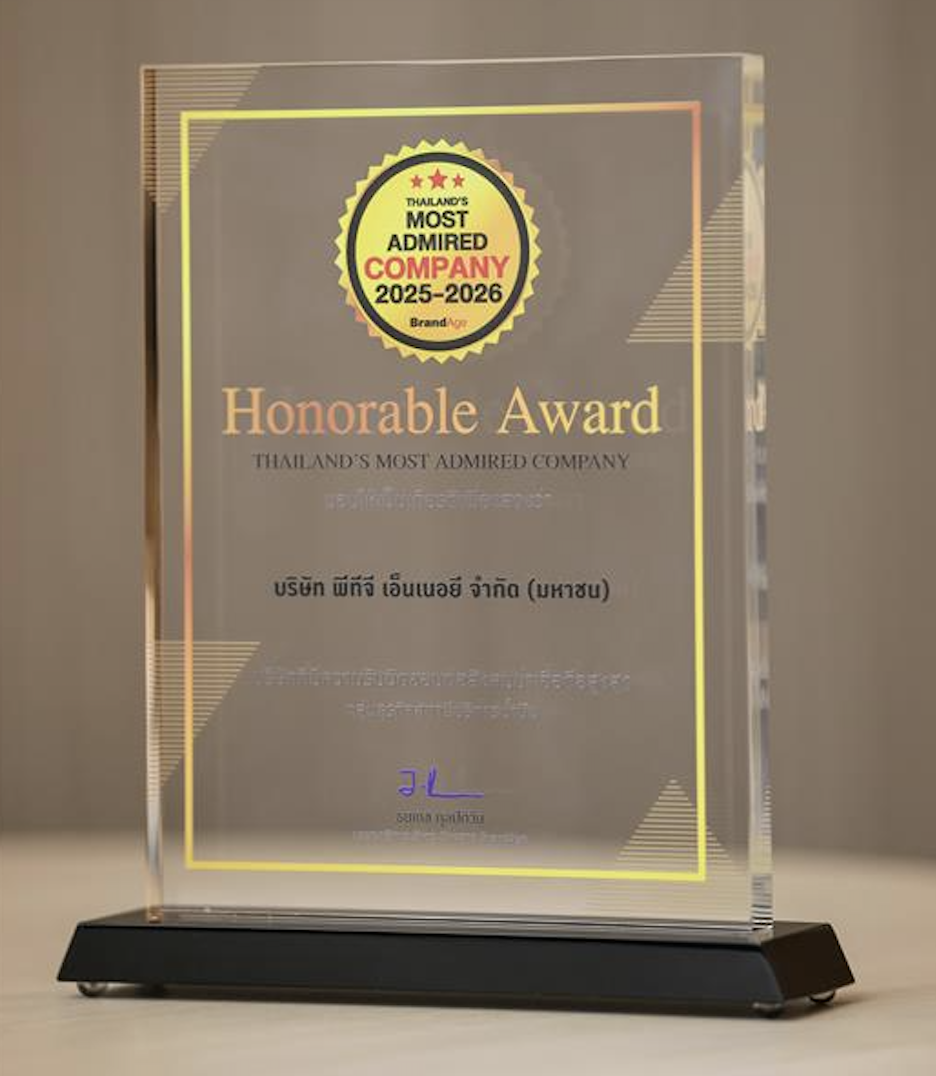 สำหรับรางวัล 2025-2026 Thailand’s Most Admired Company จัดขึ้นโดยนิตยสาร BrandAge และ BrandAge Online ซึ่งเป็นผลการสำรวจความน่าเชื่อถือที่ได้รับการยอมรับและดำเนินการมาอย่างต่อเนื่องเป็นระยะเวลาถึง 18 ปี เพื่อเฟ้นหาบริษัทที่เป็นสุดยอดในแต่ละด้าน การได้รับรางวัลในครั้งนี้จึงนับเป็นเกียรติประวัติสูงสุดขององค์กร และเป็นแรงผลักดันสำคัญให้ PTG มุ่งมั่นพัฒนาบริการและยกระดับคุณภาพชีวิตของผู้คนในสังคมไทยต่อไป