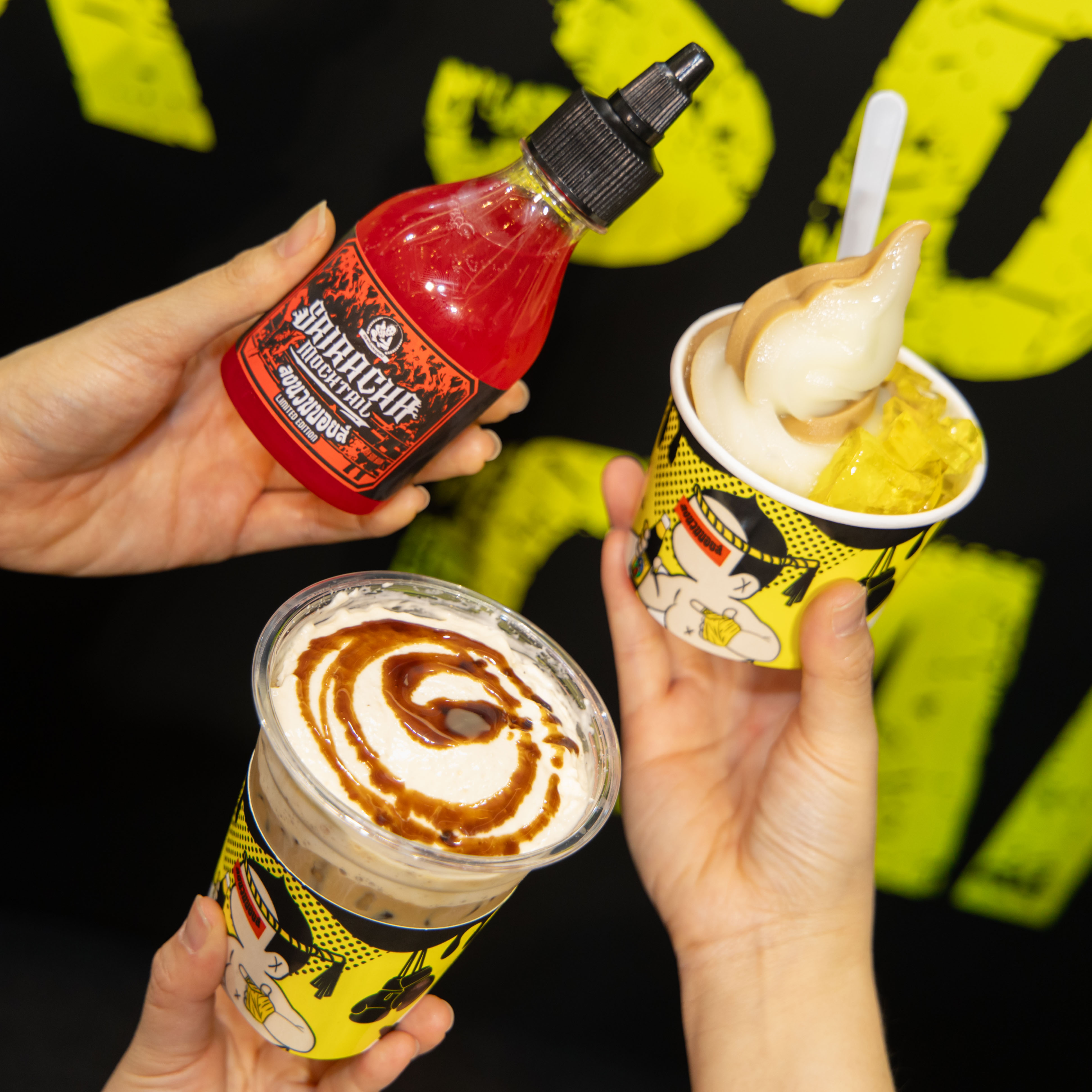 นอกจากนี้ยังยกเมนูไฮไลท์ส่งตรงจาก Dek Som Boon Café ที่เยาวราช มาให้ได้สัมผัสรสชาติความอร่อยเป็นครั้งแรก ไม่ว่าจะเป็น ไอศกรีมซีอิ๊วดำและบ๊วยเจี่ย ที่มาพร้อมท็อปปิ้งซอสสูตรใหม่ 6 รสชาติ และเมนูกาแฟสุดพรีเมี่ยม Caramel Soy Sauce Coffee with egg และ Caramel Soy Sauce Affogato พร้อมเครื่องดื่มสดชื่นร้อนแรงอย่าง Sriracha Mocktail