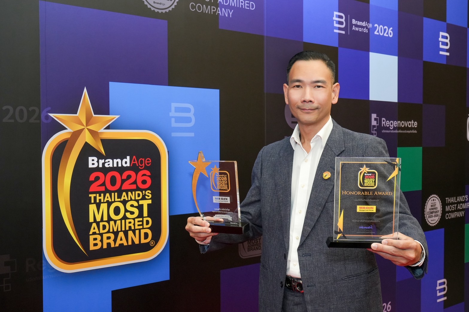 บริษัท มิสเตอร์. ดี.ไอ.วาย. โฮลดิ้ง (ประเทศไทย) จำกัด (มหาชน) ตอกย้ำความสำเร็จในฐานะผู้นำธุรกิจค้าปลีกอุปกรณ์ตกแต่งบ้านและสินค้าไลฟ์สไตล์ ด้วยการคว้า 2 รางวัลใหญ่จากเวที “2026 Thailand's Most Admired Brand” ต่อเนื่องเป็นปีที่ 3 ได้แก่ รางวัลแบรนด์อันดับหนึ่งในหมวด “ช่องทางขายสมัยใหม่” กลุ่ม “ร้านขายสินค้าตกแต่งซ่อมแซมบ้าน” และ รางวัล “Brand Star Award” สำหรับแบรนด์ที่มีความโดดเด่นจากการดำเนินกิจกรรมและการส่งเสริมการตลาด รางวัลดังกล่าวสะท้อนความเชื่อมั่นและความไว้วางใจของผู้บริโภคทั่วประเทศ โดยมีคุณอานุภาพ คงมาลัย รองประธานบริหารฝ่ายการตลาด เป็นผู้แทนบริษัทฯ เข้ารับรางวัลในครั้งนี้