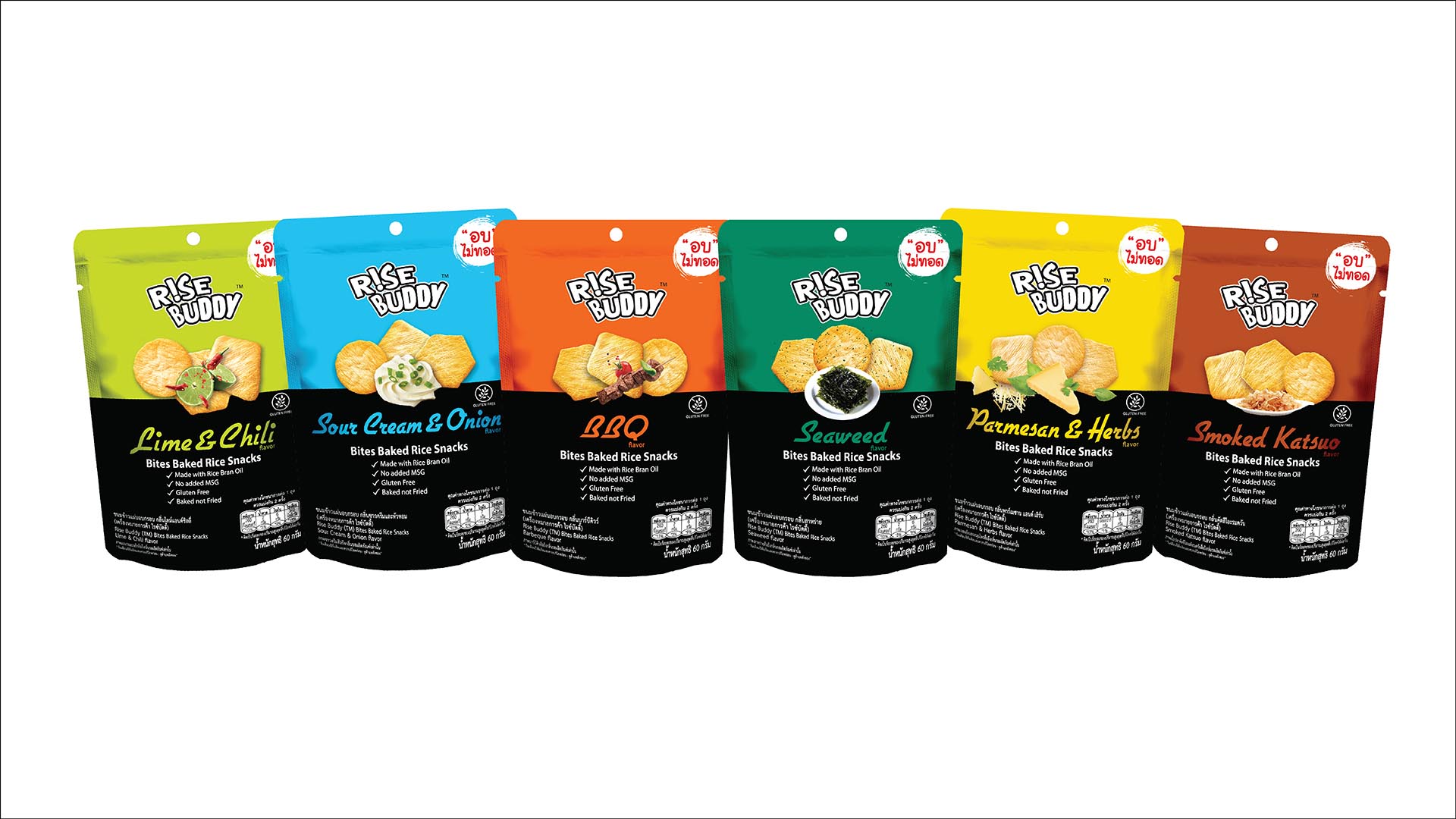 ได้แก่ Master Rice, Rise Buddy, Ravin, Bio-Earth และ Kiddie Kare ภายใต้แนวคิด Better for You มุ่งสร้างทางเลือกขนมที่อร่อยและดีต่อสุขภาพ โดยผลิตภัณฑ์ผ่านกระบวนการ "อบ ไม่ทอด" ไม่มีไขมันทรานส์ ไขมันต่ำกว่า 10% ไม่ใส่ผงชูรส ไม่มีกลูเตน และได้รับการรับรองมาตรฐานฮาลาล