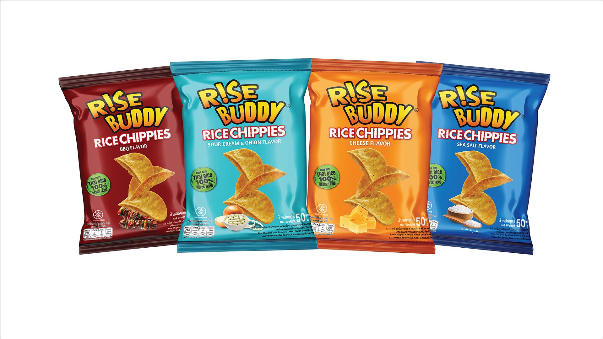 ขณะที่อีกหนึ่งไฮไลต์ของแบรนด์ คือ ไรซ์ ชิปปี้ส์ (Rice Chippies) ซึ่งเป็นนวัตกรรมขนมข้าวอบกรอบแผ่นบางรายแรกของตลาด ซึ่งพัฒนาขึ้นด้วยเทคโนโลยีการผลิตเฉพาะ เพื่อให้ได้แผ่นข้าวที่มีความบางและโค้งงอคล้ายมันฝรั่งทอด ทั้งที่โดยธรรมชาติของขนมข้าวอบกรอบการขึ้นรูปให้มีลักษณะดังกล่าวทำได้ยาก จึงนับเป็นอีกหนึ่งความก้าวหน้าของการพัฒนาขนมขบเคี้ยวจากข้าวไทย มีให้เลือก 4 รสชาติ ได้แก่ บีบีคิว (BBQ) ซาวร์ครีมแอนด์ออเนี่ยน (Sour Cream & Onion) ซีซอลท์ (Sea Salt) และชีส (Cheese) โดยวางจำหน่ายในขนาด 50 กรัม ราคา 29 บาท