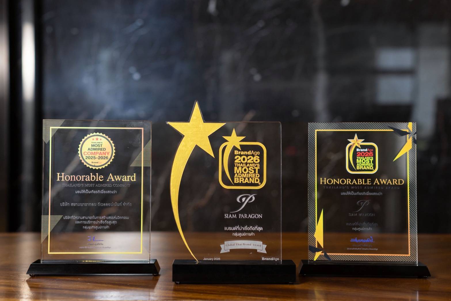 • รางวัล 2025-2026 Thailand’s Most Admired Company ต่อเนื่องเป็นปีที่ 3 แสดงถึงความสามารถในการสร้างสรรค์นวัตกรรม (Innovation) และการบริการ (Excellence Service) ที่มีความน่าเชื่อถือสูงสุด กลุ่มธุรกิจศูนย์การค้ากรรมการผู้จัดการ ธุรกิจศูนย์การค้าสยามพารากอน