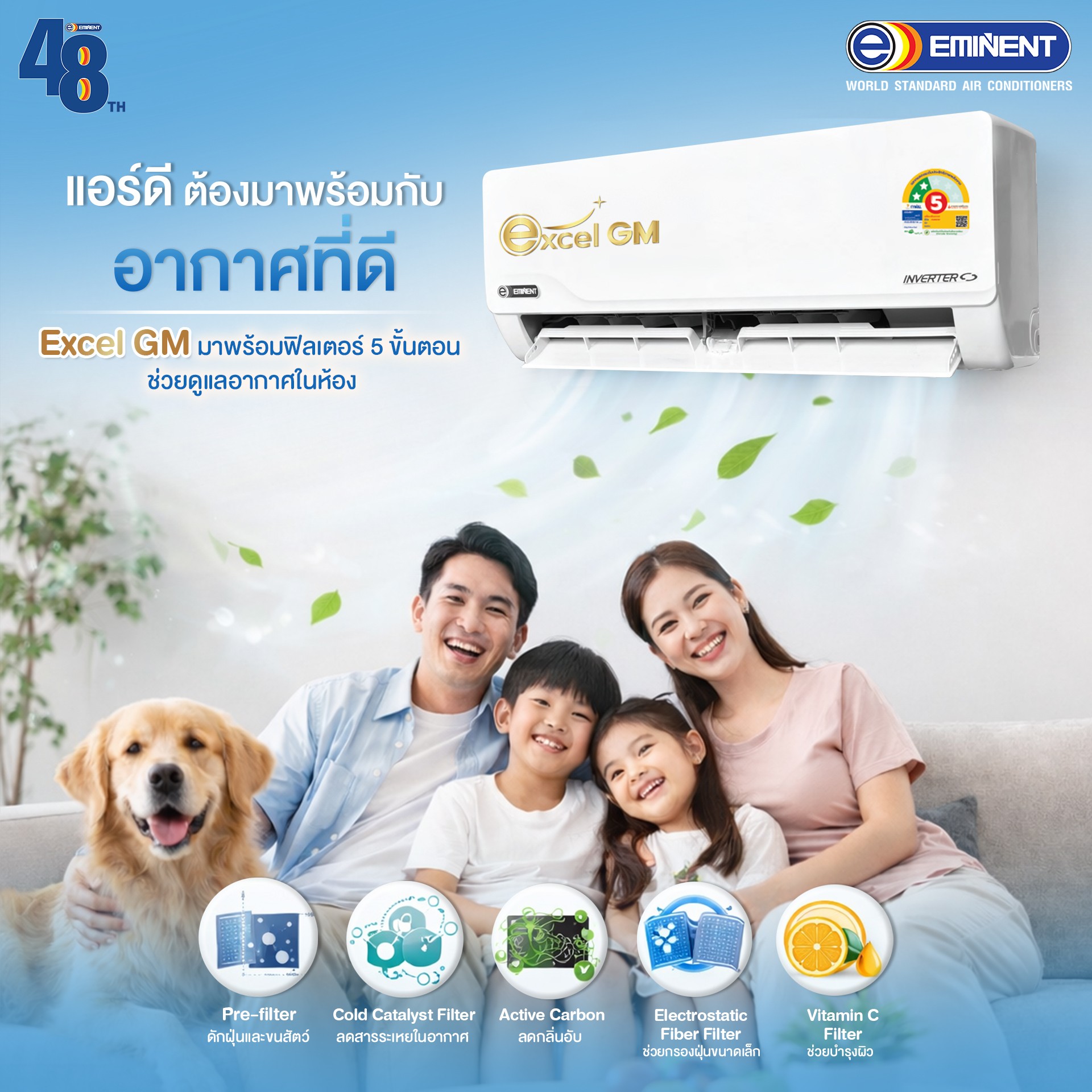 Eminent Air เปิดตัวเครื่องปรับอากาศ 2 รุ่นใหม่ Excel GM และ Happy Earth GM ที่พัฒนาขึ้นเพื่อตอบโจทย์อากาศร้อนและมลภาวะในประเทศไทย พร้อมชูเทคโนโลยีสำคัญ Gold Fin คอยล์เคลือบสารสีทอง ที่ช่วยเพิ่มความทนทานให้กับเครื่องปรับอากาศ และยืดอายุการใช้งานได้ยาวนานยิ่งขึ้น