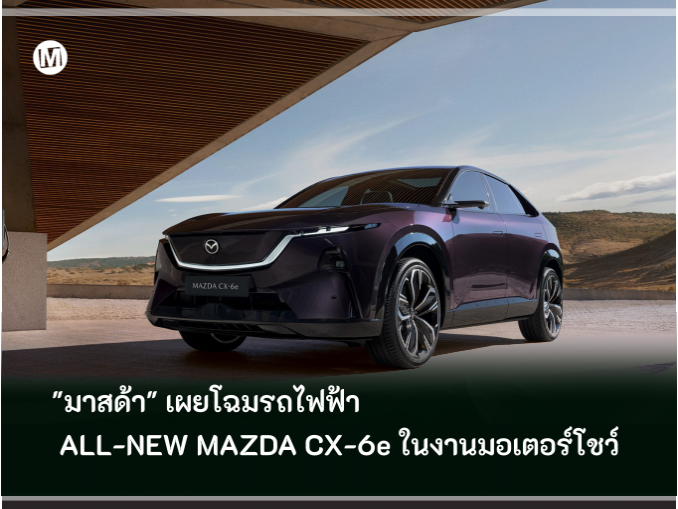 ALL-NEW MAZDA CX-6e ครอสโอเวอร์เอสยูวีที่โดดเด่นด้วยดีไซน์หรูหราและทันสมัย มาพร้อมสมรรถนะการขับขี่ตามปรัชญา จินบะ-อิตไต ให้ความเป็นหนึ่งเดียวกันระหว่างผู้ขับขี่กับรถ มอบความสนุกในการขับขี่สไตล์มาสด้า อัดแน่นด้วยเทคโนโลยีอัจฉริยะที่ช่วยให้การใช้งานทั้งภายในและภายนอกเป็นไปอย่างราบรื่น ตอบโจทย์ความต้องการและความชื่นชอบที่หลากหลายของลูกค้าชาวไทย รถยนต์รุ่นนี้ถือเป็นรถยนต์ไฟฟ้ารุ่นที่สองของมาสด้าที่เปิดตัวในประเทศไทย ภายใต้กลยุทธ์ Multi-solution เพื่อมอบทางเลือกที่หลากหลายให้กับลูกค้า ตามความปรารถนาอันแรงกล้าของมาสด้าที่ยึดมั่นในการส่งมอบความเป็นกลางทางคาร์บอนเพื่อโลกของเรายังคงสวยงามตลอดไป