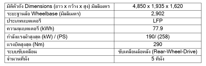 **อ้างอิงจากการใช้เครื่องชาร์จเร็ว DC 200 kW ขึ้นไป ระยะเวลาการชาร์จจริงขึ้นอยู่กับปัจจัยต่าง ๆ ณ ขณะชาร์จ เช่น สภาพแบตเตอรี่ อุณหภูมิของแบตเตอรี่และอุณหภูมิแวดล้อม