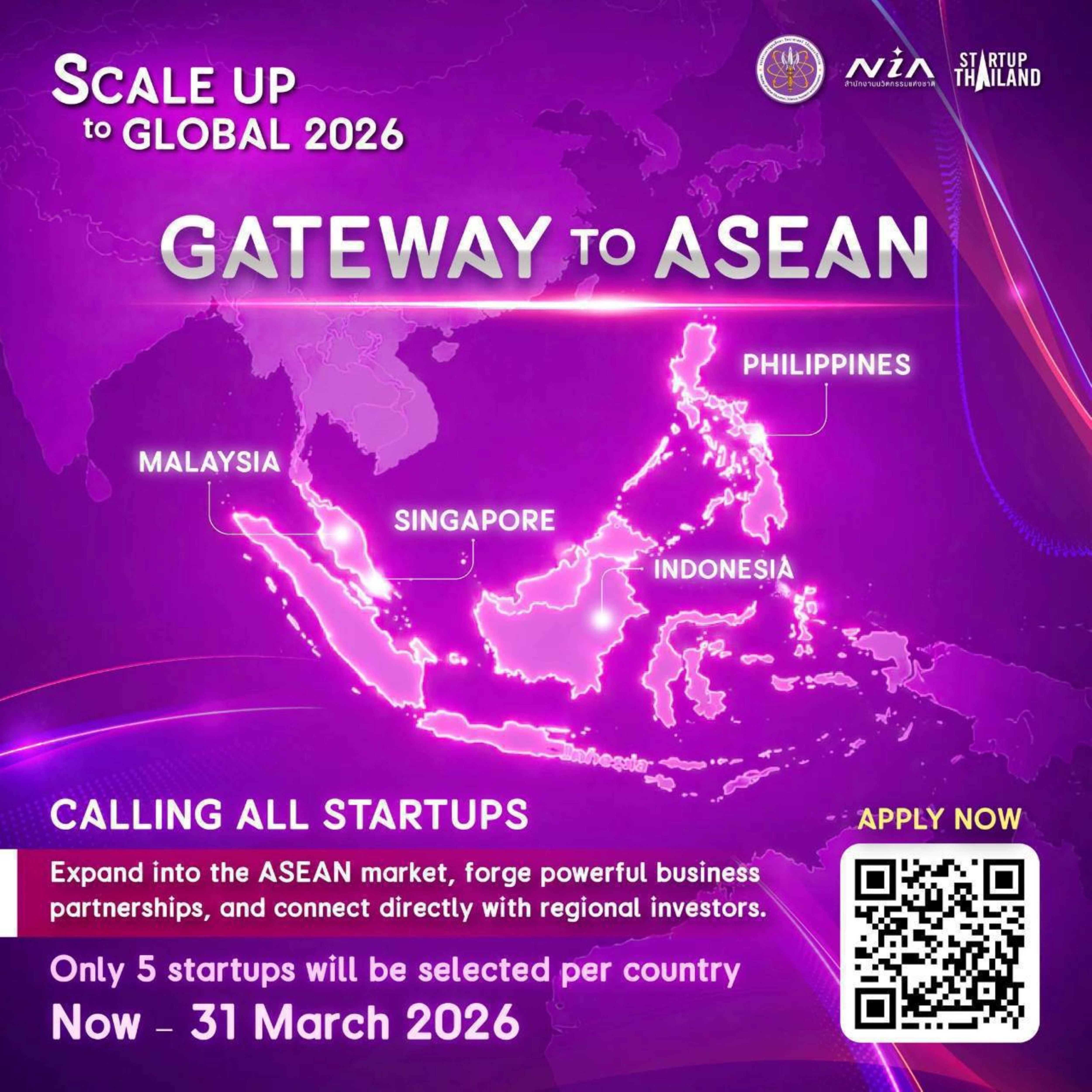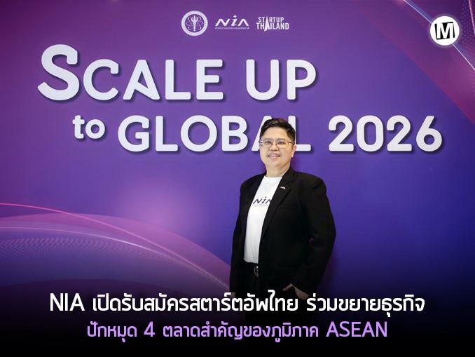 สำนักงานนวัตกรรมแห่งชาติ (องค์การมหาชน) หรือ NIA เดินหน้าโปรเจ็คท์ Scale Up to Global: GATEWAY to ASEAN 2026 โอกาสใหม่ของสตาร์ตอัปไทย โดยมีหมุดหมายสำคัญในการขยายธุรกิจเทคโนโลยีและนวัตกรรมให้เติบโตในระดับภูมิภาค ASEAN