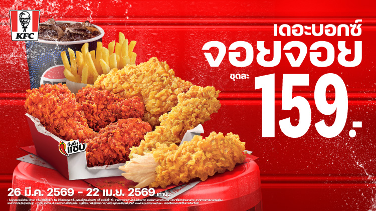 สงกรานต์นี้ ปล่อยจอยให้สุดกับเมนูพิเศษที่ KFC จัดเต็มมาเพื่อเทศกาลนี้โดยเฉพาะ ครบจบในชุดเดียว ในราคาเริ่มต้นเพียง 159 บาท พร้อมเสิร์ฟที่ KFC ทุกสาขาทั่วประเทศ (ยกเว้นสาขาสนามบินดอนเมืองและสุวรรณภูมิ) ตั้งแต่วันนี้ – 22 เมษายน 2569