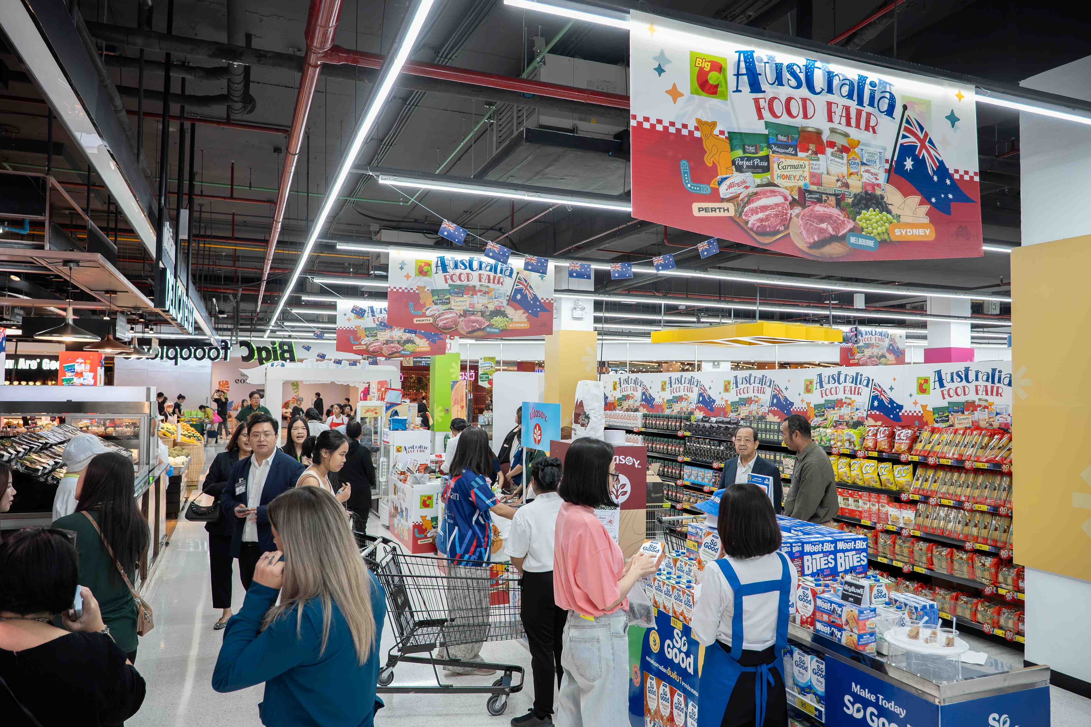 ภายในงาน “Australia Fair” บิ๊กซีได้ร่วมมือกับสถานเอกอัครราชทูตออสเตรเลียประจำประเทศไทย คัดสรรสินค้านำเข้าคุณภาพและสินค้าเกรดพรีเมียมจากออสเตรเลีย ครอบคลุมทั้งอาหารสด อาหารแปรรูป และสินค้าอุปโภคบริโภค เพื่อตอบโจทย์ไลฟ์สไตล์ผู้บริโภคยุคใหม่ที่มองหาทั้งคุณภาพและความหลากหลาย โดยไฮไลต์สำคัญคือการรวบรวมสินค้าชั้นนำจากออสเตรเลียมาไว้ในงานเดียว อาทิ Australian Grape, Beef, Lamb รวมถึงแบรนด์ยอดนิยมอย่าง Sanitarium Weet-Bix, So Good, Vitasoy, Continental, Carmans, Real Food, San Remo, Madura, The Natural และ Bundaberg ให้ลูกค้าได้เลือกชอปอย่างเต็มอิ่มพร้อมเพลิดเพลินกับบูทแสดงสินค้ากว่า 11 บูท ที่ยกประสบการณ์ “ออสเตรเลีย” มาไว้ใกล้ตัวมากยิ่งขึ้น นอกจากนี้ ยังมาพร้อมโปรโมชันสุดพิเศษ ลดสูงสุดถึง 50% ให้ลูกค้าได้ชอปสินค้าคุณภาพระดับโลกในราคาสุดคุ้ม ทั้งหน้าร้านและออนไลน์ผ่านแอป Big C PLUS เพิ่มความสะดวกสบายให้สามารถเลือกซื้อสินค้าได้ทุกที่ทุกเวลา