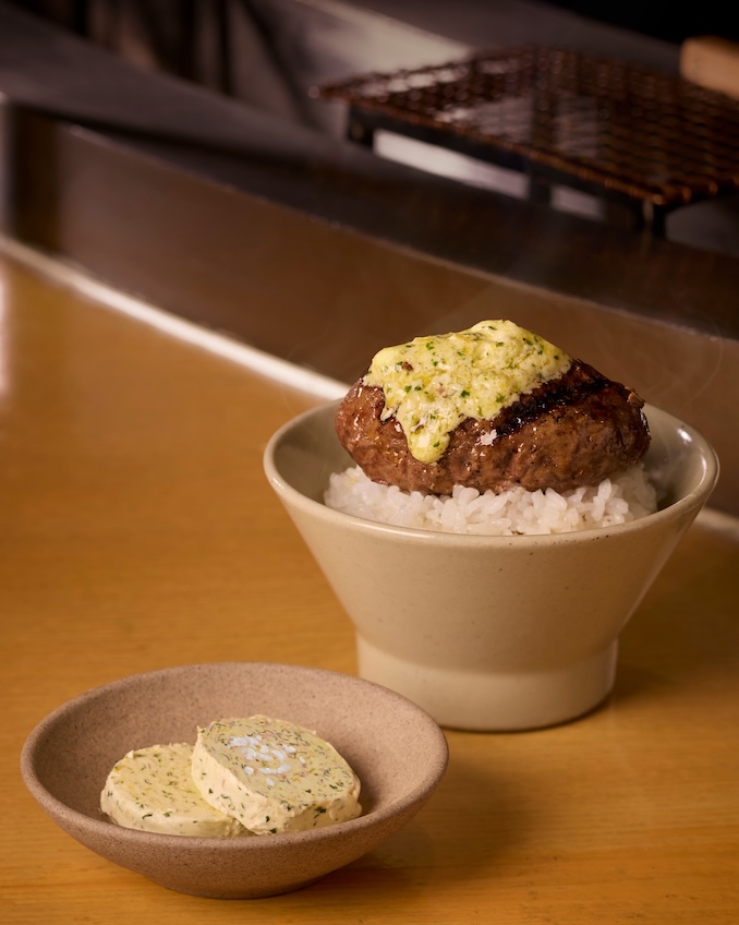 โดยวาง LEMON HERB BUTTER ลงบนแฮมเบิร์กบนตะแกรง เพื่อให้ความร้อนจากถ่านด้านล่าง ละลายเนยด้านบนจนแทรกซึมลงบนแฮมเบิร์กทั่วทุกอนู
