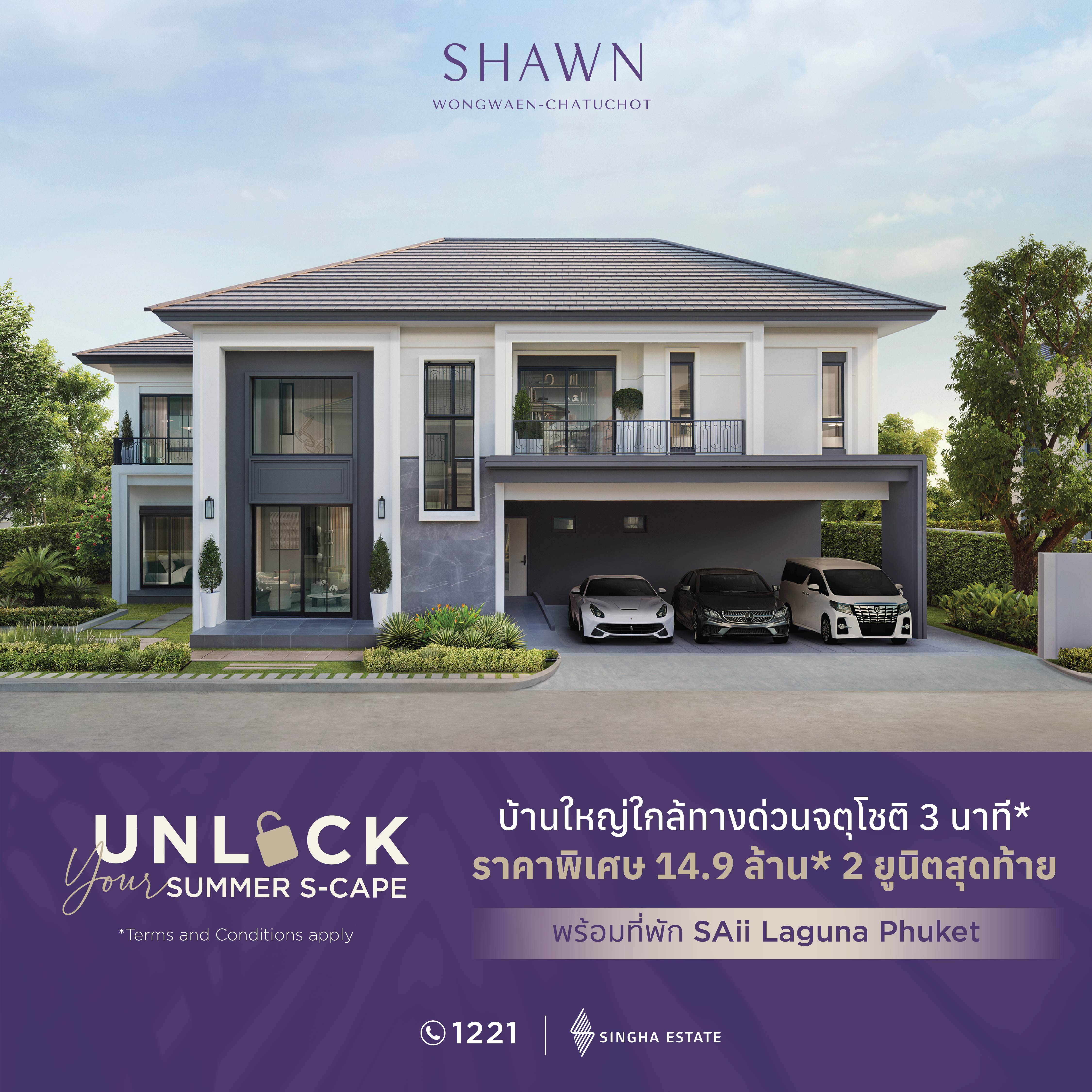 โครงการบ้านเดี่ยวแบรนด์ “ฌอน” (SHAWN) ครอบคลุม 2 ทำเลศักยภาพ ได้แก่ “ฌอน วงแหวน-จตุโชติ” ทำเลติดถนนใหญ่ ใกล้ทางด่วนจตุโชติ 3 นาที ราคาพิเศษเริ่มต้น 14.9 ล้านบาท* 2 ยูนิตจำนวนจำกัด และ “ฌอน ปัญญาอินทรา” บ้านเดี่ยวหน้ากว้างที่ดิน 100 ตร.ว. ขึ้นไป กับโอกาสสุดท้ายในโซนหน้าโครงการ ราคาพิเศษเริ่มต้น 17.9 ล้านบาท* 2 ยูนิตเท่านั้น พร้อมรับแพ็กเกจที่พัก SAii Laguna Phuket 3 วัน 2 คืน ห้อง Beach Access Suite
