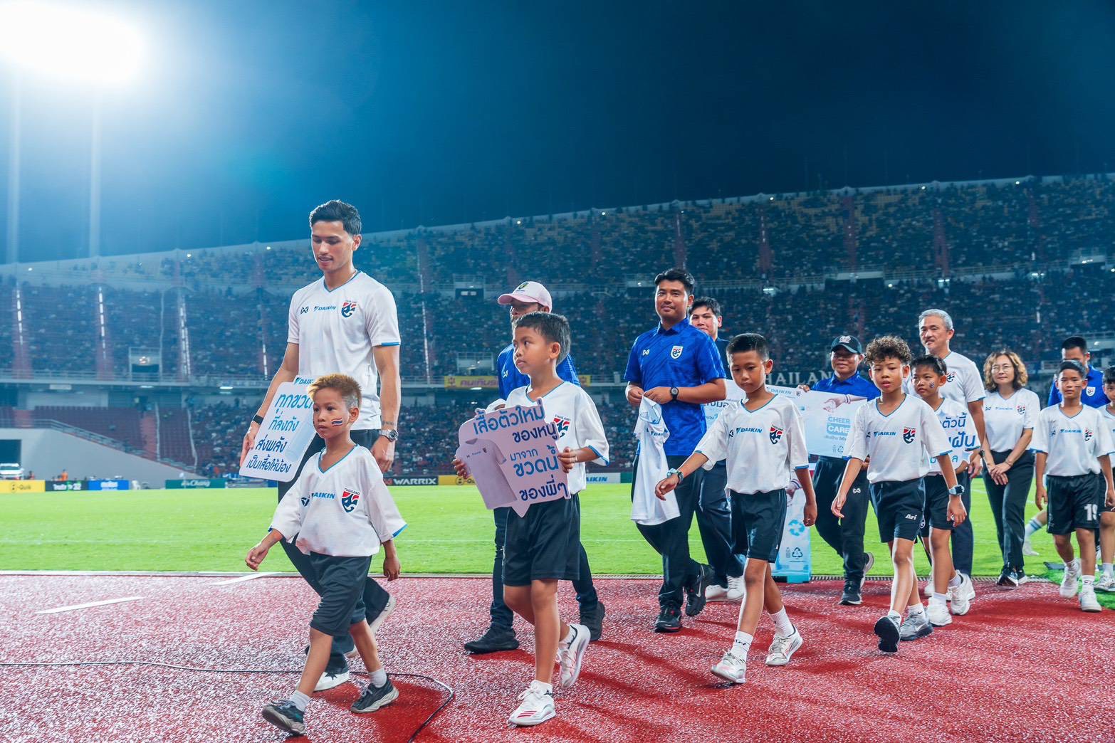 กิจกรรมดังกล่าวจัดขึ้นเมื่อวันที่ 31 มีนาคม 2569 ณ สนามราชมังคลากีฬาสถาน ในการแข่งขันฟุตบอลเอเอฟซี เอเชียน คัพ รอบคัดเลือก ระหว่างทีมชาติไทย พบ ทีมชาติเติร์กเมนิสถาน โดยได้รับเกียรติจาก คุณสึโทมุ คูริฮาระ ประธานบริษัทไดกิ้น อินดัสทรีส์ (ประเทศไทย) จำกัด, คุณฮุนจัง คิม ผู้ช่วยผู้จัดการทั่วไป กลุ่มบริหารแบรนด์องค์กร บริษัทไดกิ้น อินดัสทรีส์ (ประเทศไทย) จำกัด, คุณ เอกพล พลนาวี เลขาธิการสมาคมกีฬาฟุตบอลแห่งประเทศไทยฯ, และนักกีฬาตัวแทนทีมชาติไทยอย่าง พาตริก กุสตาฟส์สัน และ นาธาน เจมส์ ร่วมมอบเสื้อรีไซเคิล “We Cheer We Care” ให้แก่ตัวแทนเยาวชน เพื่อสนับสนุนโอกาสในการพัฒนาทักษะและศักยภาพด้านกีฬาของเยาวชนไทย