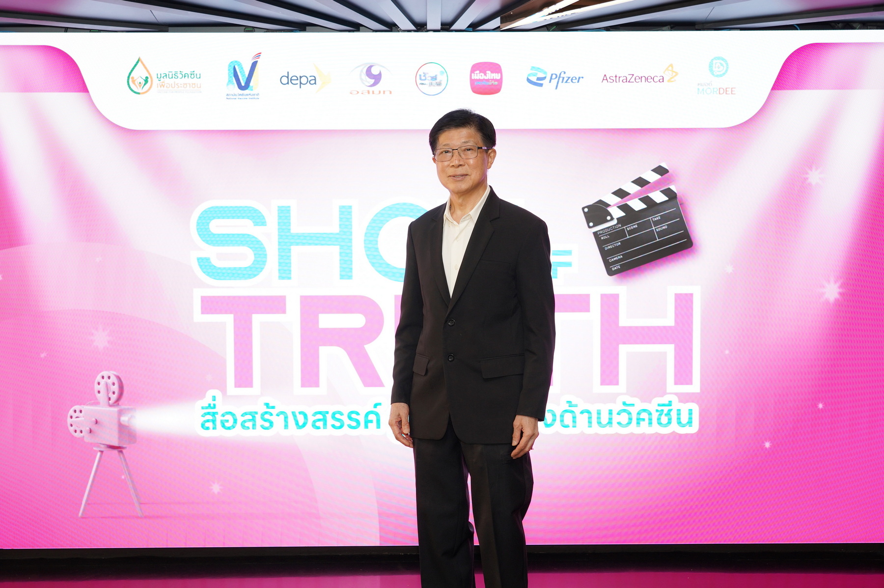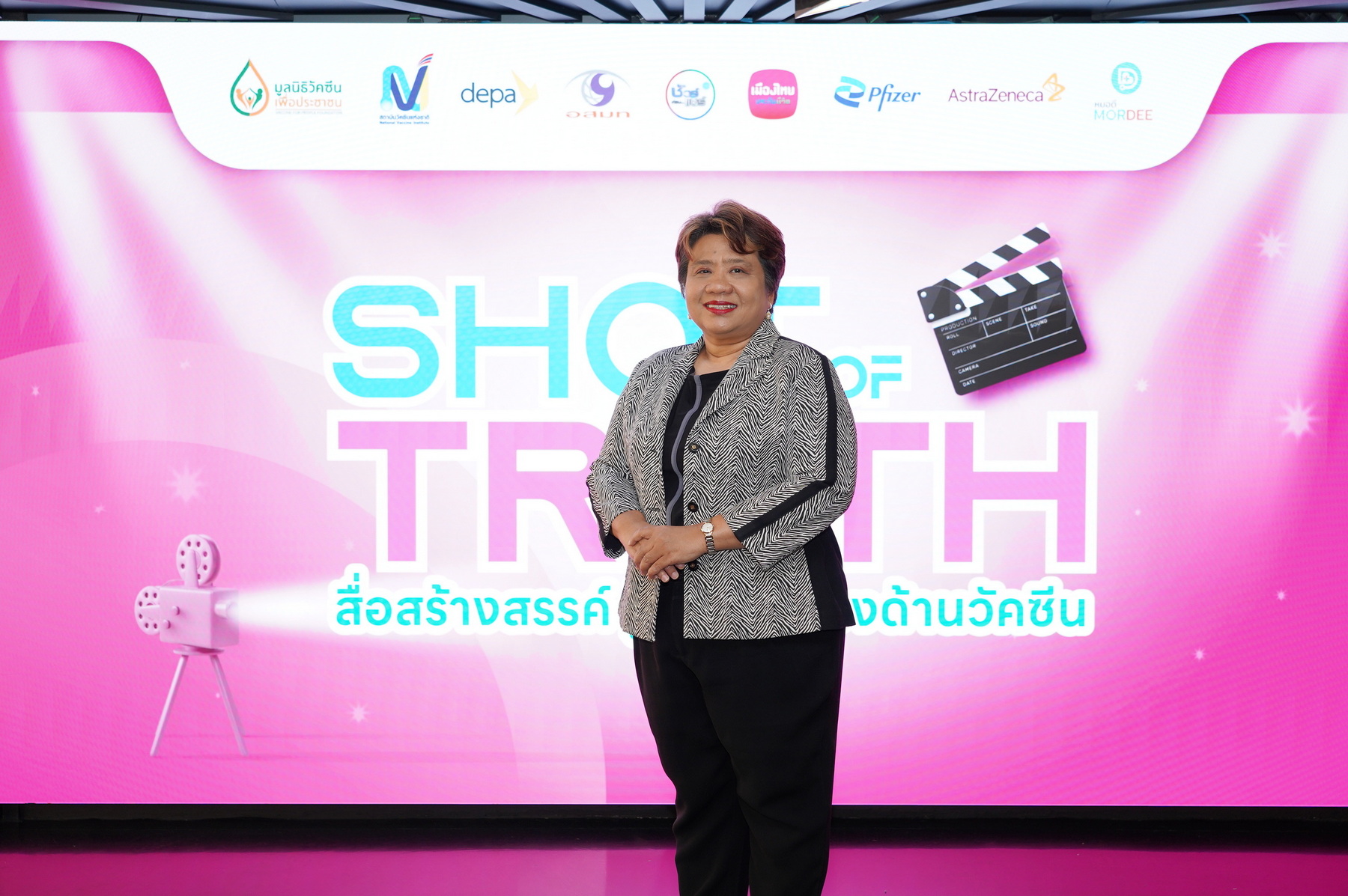 มูลนิธิวัคซีนเพื่อประชาชน ร่วมกับ สถาบันวัคซีนแห่งชาติ และภาคีเครือข่ายทั้งภาครัฐและเอกชน ได้แก่ สำนักงานส่งเสริมเศรษฐกิจดิจิทัล (depa) ศูนย์ชัวร์ก่อนแชร์ สำนักข่าวไทย อสมท บริษัท เมืองไทยประกันชีวิต จำกัด (มหาชน) บริษัท ไฟเซอร์ (ประเทศไทย) จำกัด บริษัท แอสตร้าเซนเนก้า (ประเทศไทย) จำกัด และ MorDee (หมอดี) แพลตฟอร์มบริการสุขภาพอัจฉริยะ โดย ทรู ดิจิทัล กรุ๊ป จัดพิธีประกาศผลและมอบรางวัลโครงการ “Shot of Truth สื่อสร้างสรรค์ รู้ทันข่าวลวงด้านวัคซีน” เพื่อยกย่องผลงานของนักเรียน นักศึกษา และคนรุ่นใหม่ที่ร่วมผลิตคลิปวิดีโอสั้น ถ่ายทอดข้อมูลที่ถูกต้องเกี่ยวกับวัคซีนและโรคระบบทางเดินหายใจที่สามารถป้องกันได้ด้วยวัคซีน สร้างภูมิคุ้มกันข่าวลวง และส่งเสริมการใช้สื่อออนไลน์อย่างสร้างสรรค์ในสังคมไทย