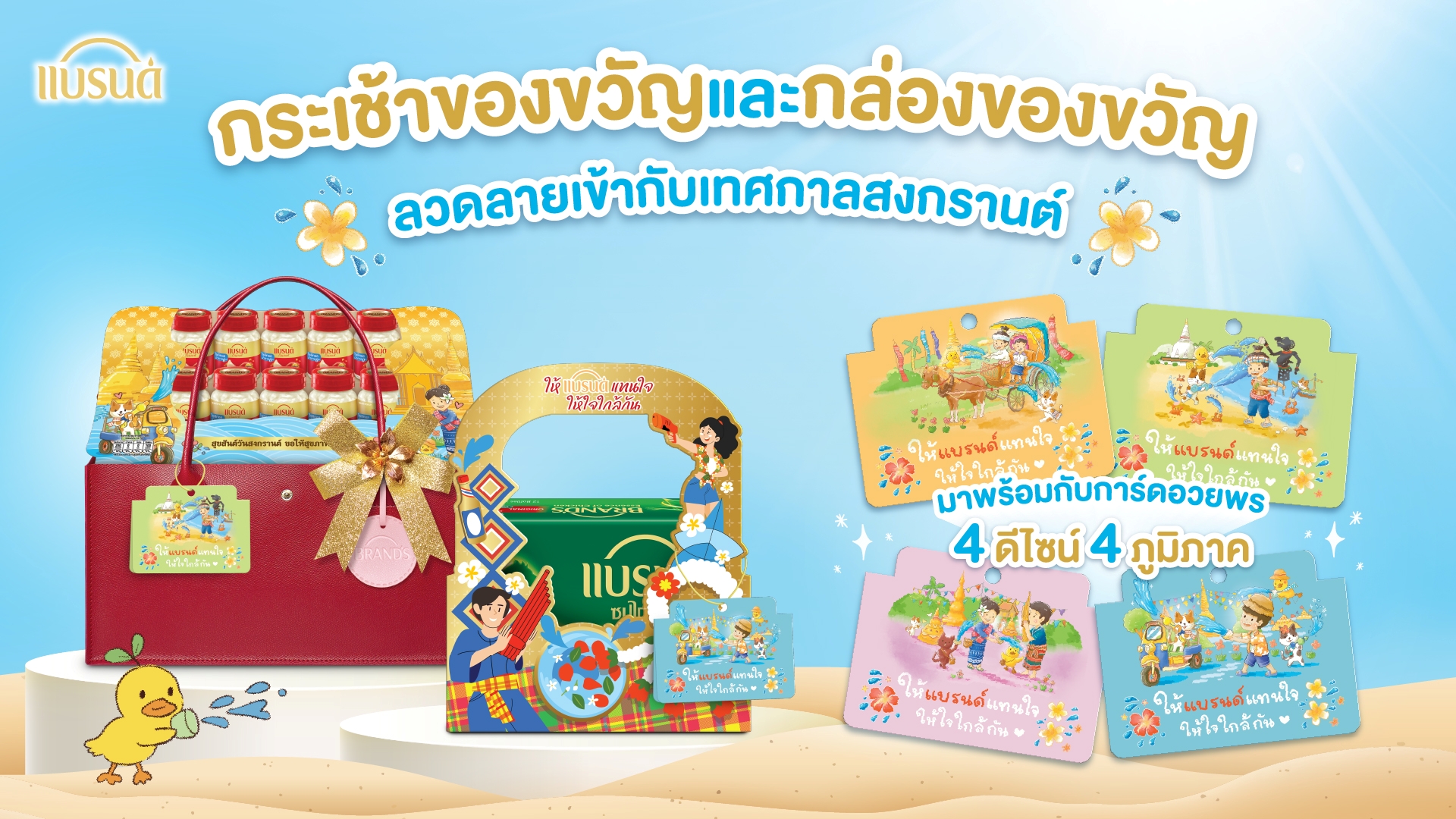 นายนภิส ศศิวิมลกุล ผู้อำนวยการฝ่ายการตลาดกลุ่มผลิตภัณฑ์แบรนด์รังนกแท้และของขวัญแบรนด์ บริษัท ซันโทรี่ เบเวอเรจ แอนด์ ฟู้ด (ประเทศไทย) จำกัด กล่าวว่า “สงกรานต์เป็นช่วงเวลาสำคัญที่ผู้คนได้เดินทางกลับบ้านเพื่อใช้เวลาร่วมกับครอบครัว พร้อมนำของขวัญพิเศษไปมอบให้พ่อแม่และญาติผู้ใหญ่ เพื่อสะท้อนถึงความรัก ความคิดถึง และความกตัญญูที่มีต่อกัน ขณะเดียวกัน ผู้บริโภคในปัจจุบันให้ความสำคัญกับการเลือกของขวัญที่สามารถสื่อถึงความห่วงใยและความใส่ใจได้อย่างมีความหมาย ควบคู่กับความสะดวกและความรวดเร็วในการซื้อ โดยเฉพาะช่องทางออนไลน์และบริการเดลิเวอรี ซึ่งสอดคล้องกับไลฟ์สไตล์ของผู้บริโภคยุคดิจิทัล ในฐานะผู้นำตลาดอาหารเสริมสุขภาพภายใต้ตราผลิตภัณฑ์แบรนด์ (BRAND’S) ในประเทศไทยและอินโดไชน่า แบรนด์จึงสานต่อความมุ่งมั่นในการส่งเสริมสุขภาพที่ดีอย่างยั่งยืนให้กับผู้บริโภค พร้อมตอบโจทย์ผู้บริโภคในช่วงเทศกาลสงกรานต์ด้วยการสานต่อแคมเปญ ‘#สงกรานต์นี้ให้แบรนด์แทนใจให้ใจใกล้กัน’ โดยมุ่งหวังให้ชุดของขวัญและกระเช้าแบรนด์เป็น ‘สื่อกลางความรัก’ ที่ช่วยเชื่อมโยงและส่งต่อความรักและความคิดถึงไปให้คนสำคัญในทุกเทศกาล โดยเฉพาะช่วงเวลาที่มีความหมายอย่างเทศกาลสงกรานต์ พร้อมถ่ายทอดความห่วงใยผ่านชุดของขวัญและกระเช้าแบรนด์ดีไซน์พิเศษ”