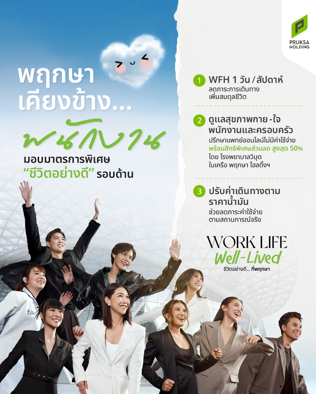 นางสาวปัทมา ปิยะมณีพร รองประธานเจ้าหน้าที่บริหารกลุ่ม บริษัท พฤกษา โฮลดิ้ง จำกัด (มหาชน) กล่าวว่า “ในช่วงที่เศรษฐกิจยังมีความผันผวน พนักงานต้องเผชิญทั้งความท้าทายในการทำงานและภาระค่าครองชีพที่เพิ่มขึ้น พฤกษาจึงมุ่งออกแบบมาตรการที่ช่วยให้พนักงานสามารถบริหาร ‘ชีวิต’ และ ‘การทำงาน’ ได้อย่างสมดุล พร้อมสร้างสภาพแวดล้อมที่เอื้อต่อประสิทธิภาพและความเป็นอยู่ที่ดีในระยะยาว”