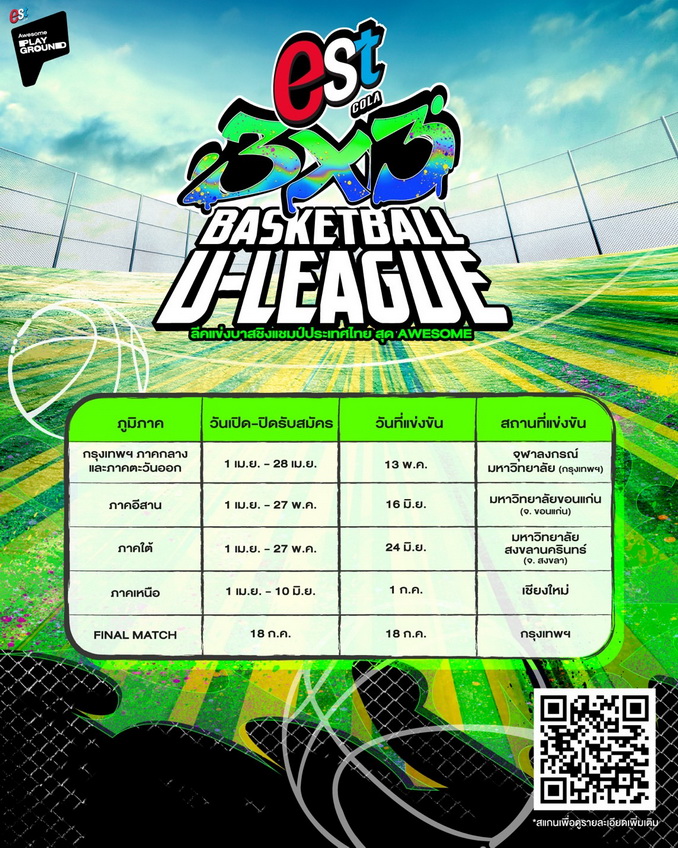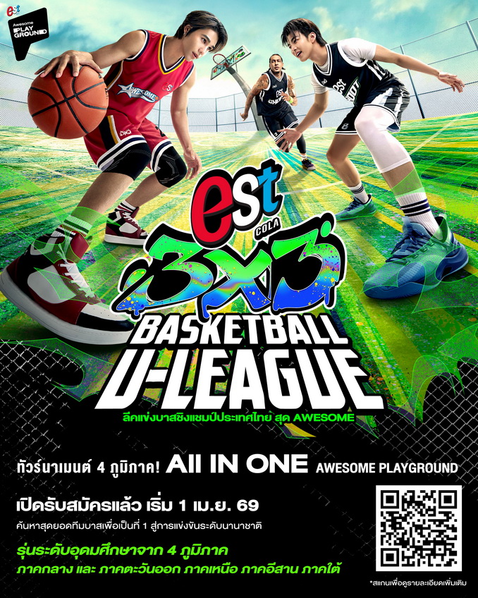 “เอส” เดินหน้าขับเคลื่อน PASSION คนรุ่นใหม่ เปลี่ยนทุกพื้นที่ให้เป็น AWESOME PLAYGROUND พื้นที่ปล่อยของของสายซ่า ให้ทุกคนได้โชว์ความ AWESOME ในแบบตัวเองแบบ ล่าสุด “เอส” จับมือ “สมาคมบาสเกตบอลแห่งประเทศไทย” เปิดเกมยัดห่วงสุดออซั่ม “est Cola 3x3 Basketball U-LEAGUE 2026” ชวนเด็กมหาวิทยาลัยรวมทีมโชว์สกิล ลุ้นแชมป์ระดับประเทศ พร้อมโอกาสไปลุยสนามการแข่งขันนานาชาติ และชิงเงินรางวัลรวมกว่า 1,000,000 บาท